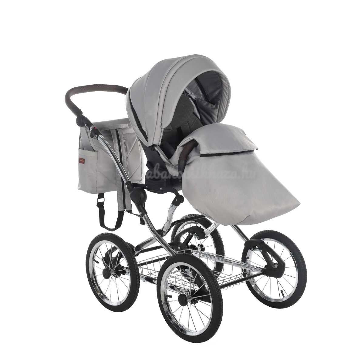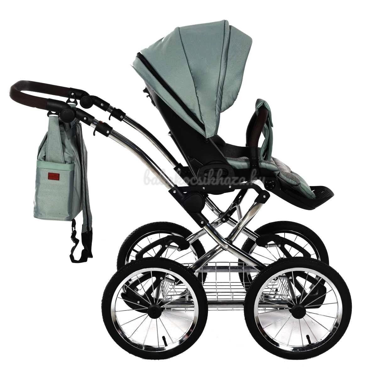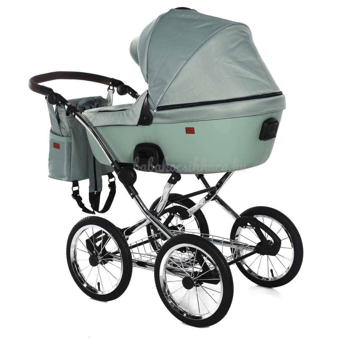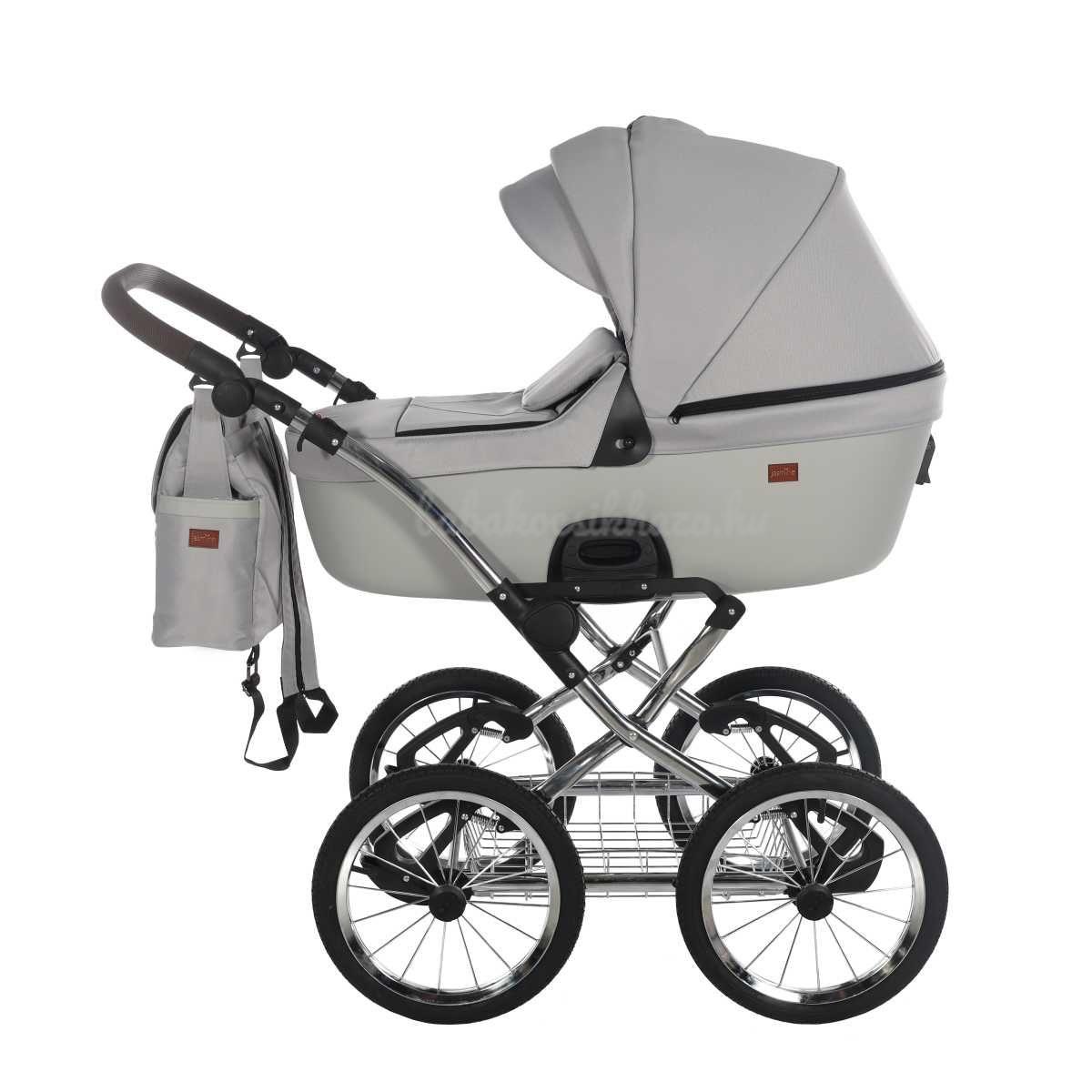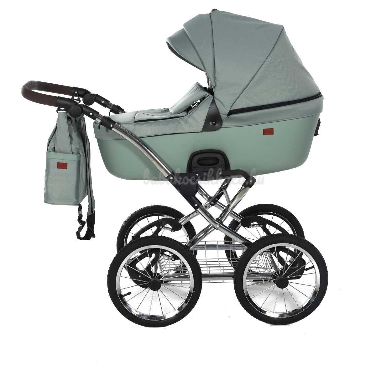 A babakocsi a tágas műanyag mózeskosárnak köszönhetően nagyon kényelmes a gyermekek számára.