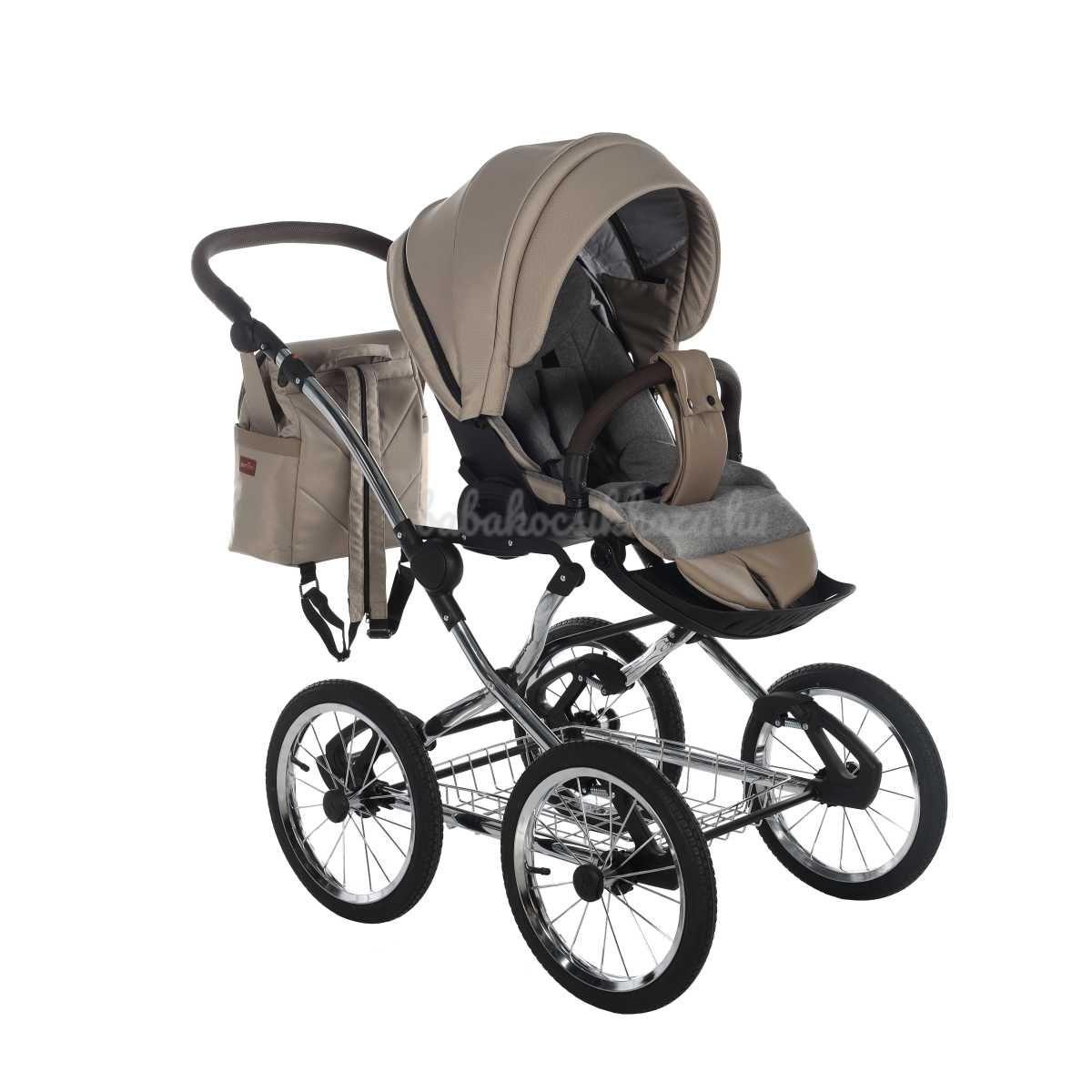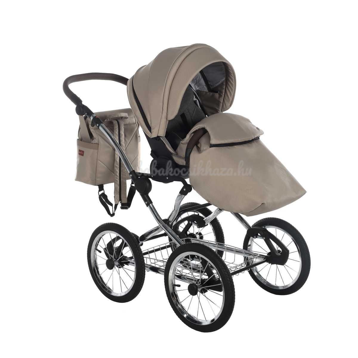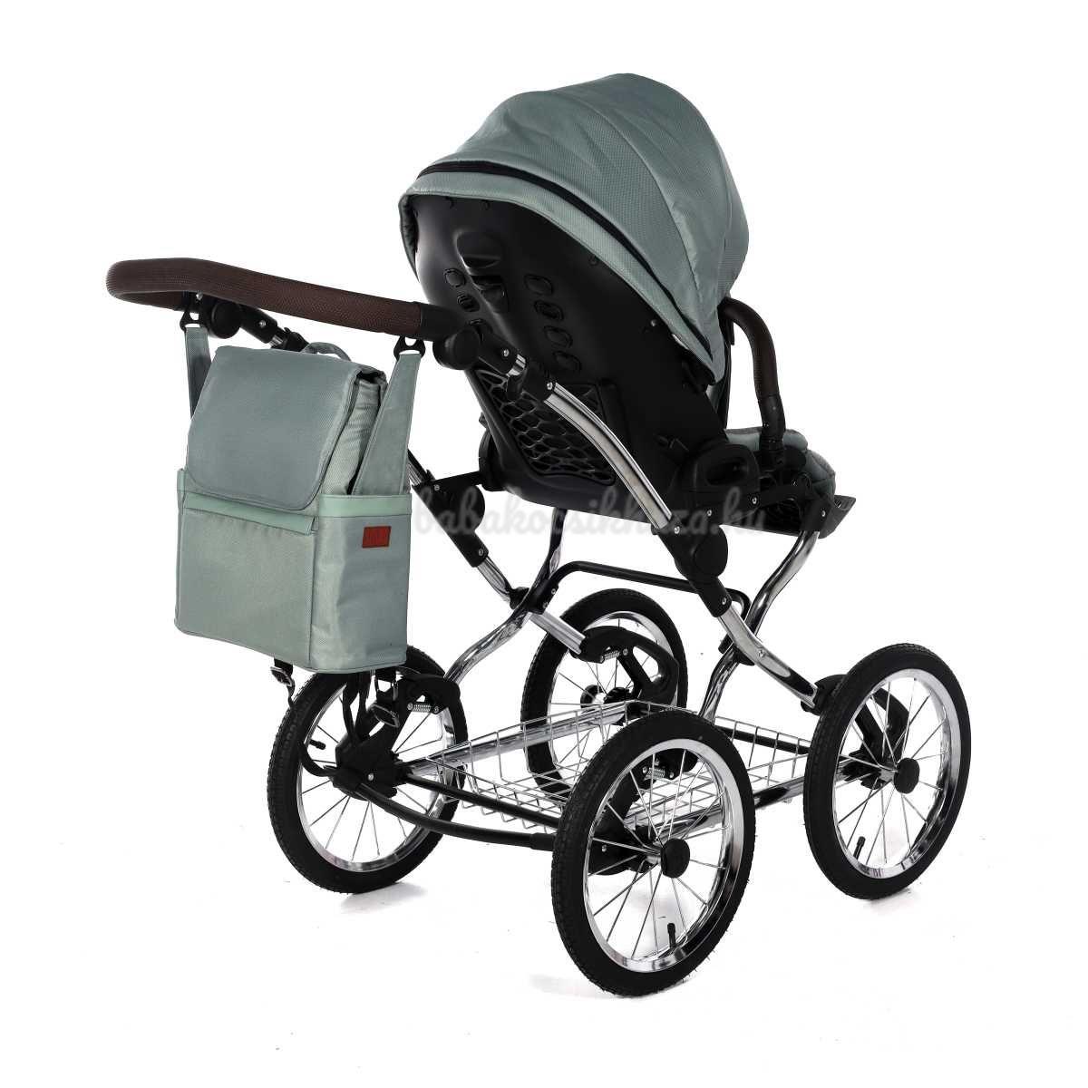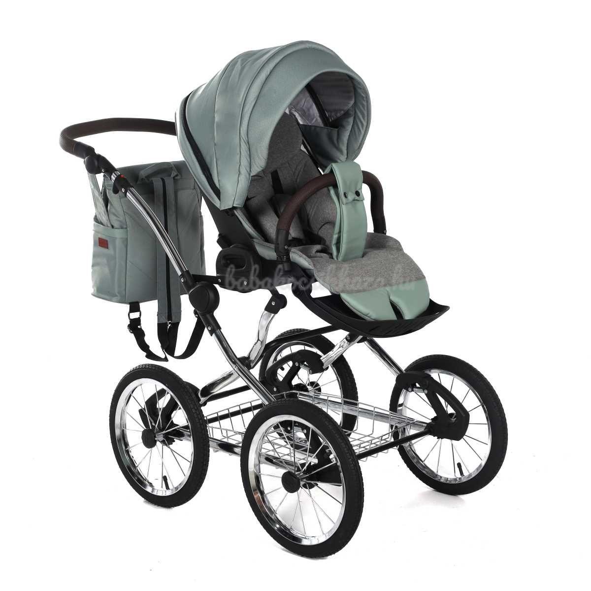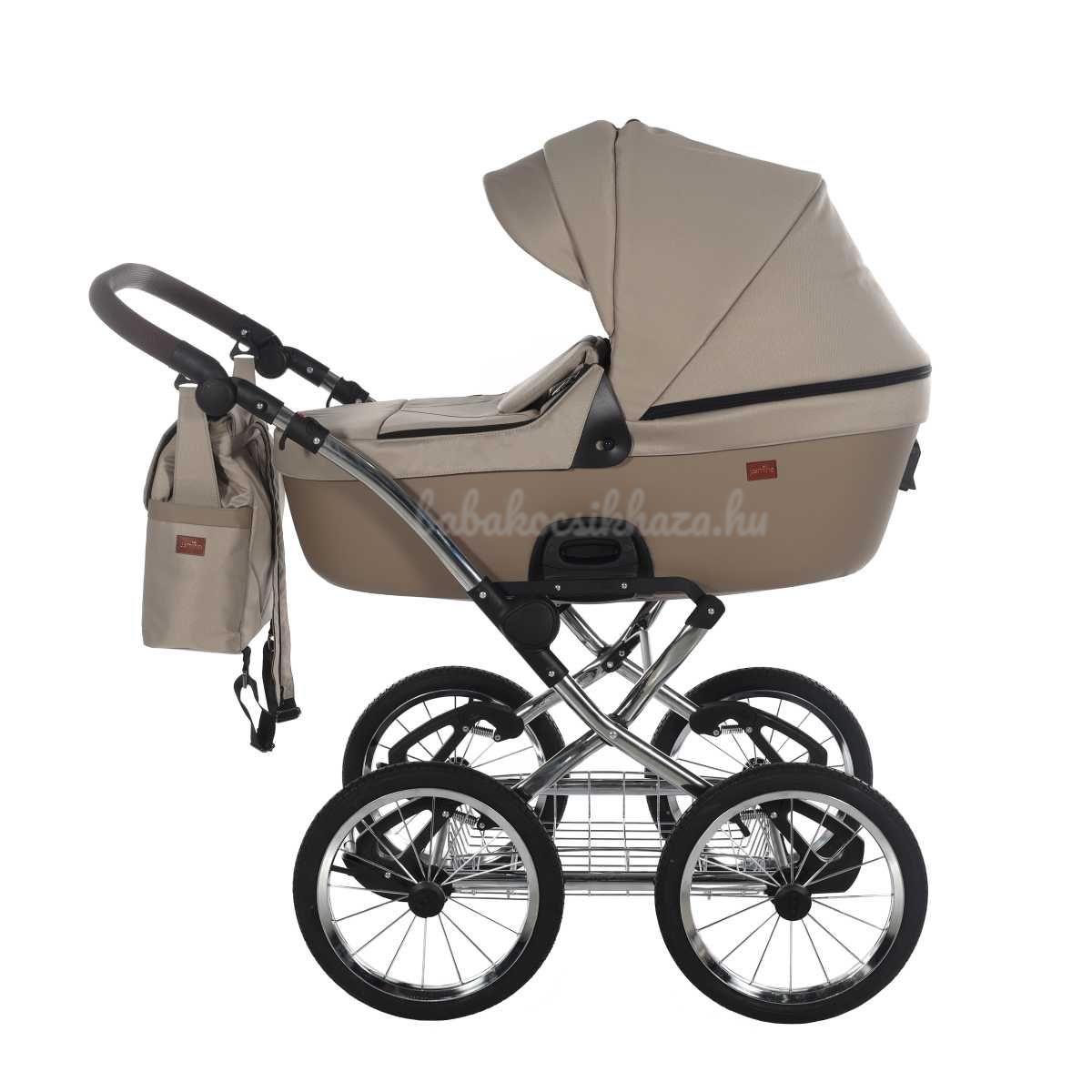 A babakocsi a tágas műanyag mózeskosárnak köszönhetően nagyon kényelmes a gyermekek számára.