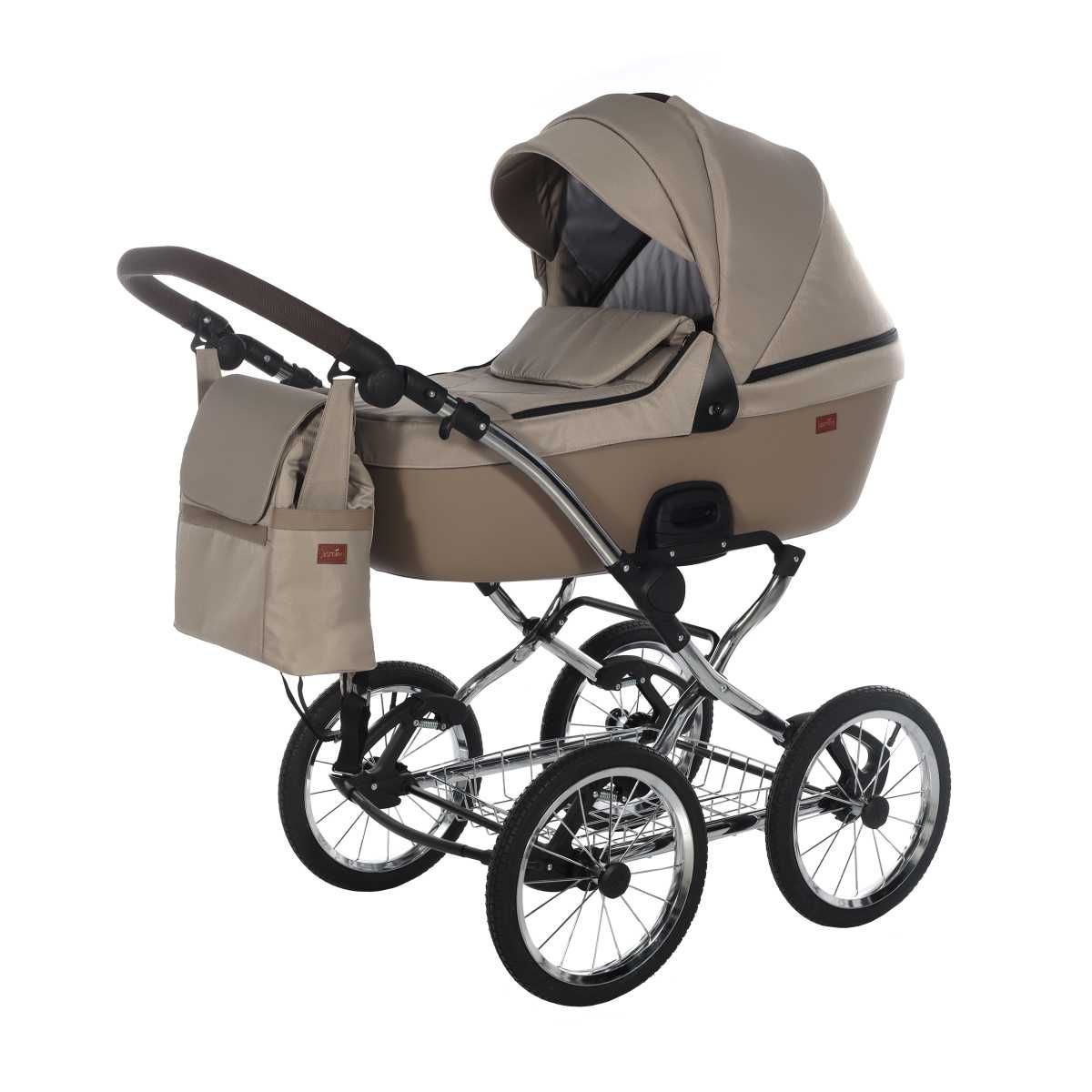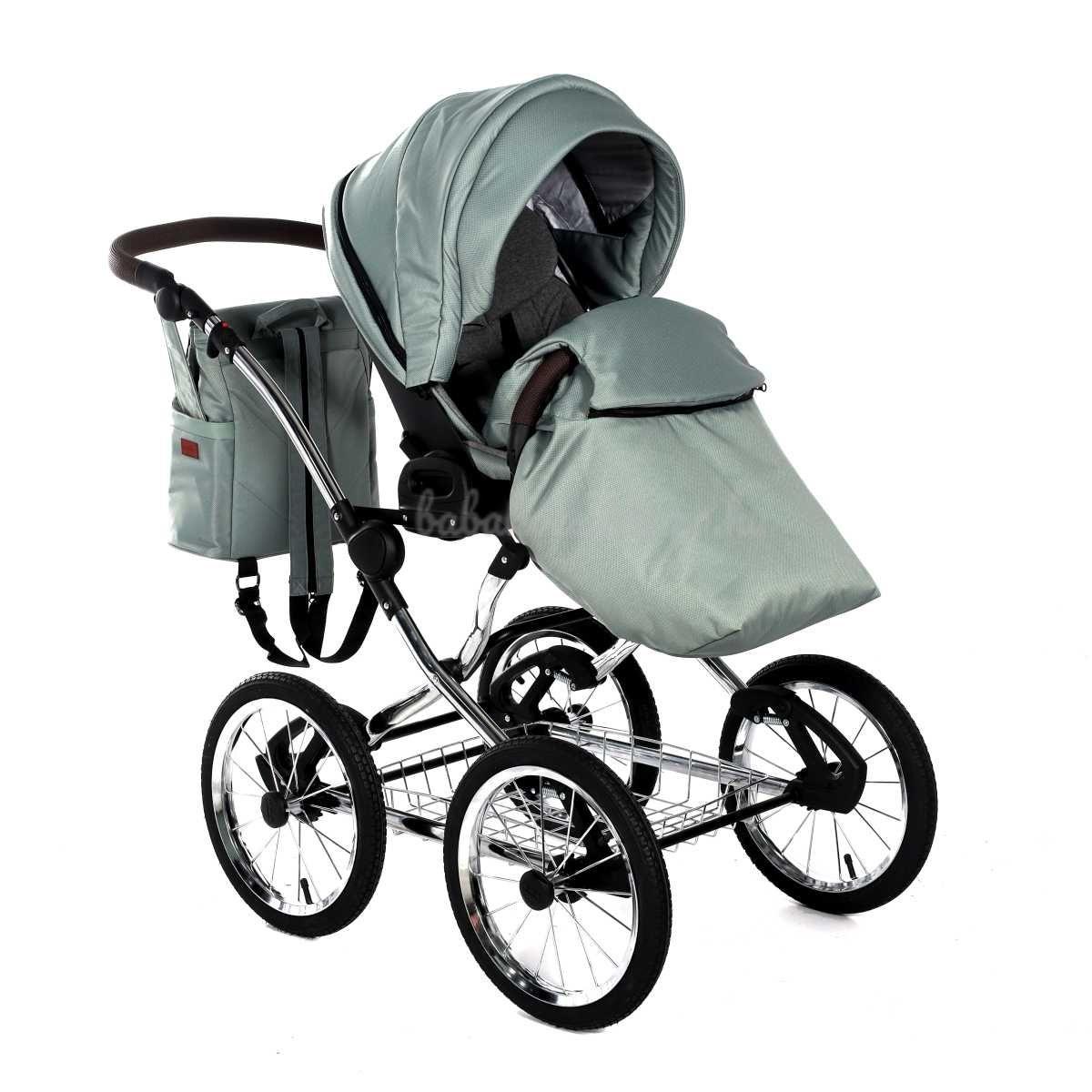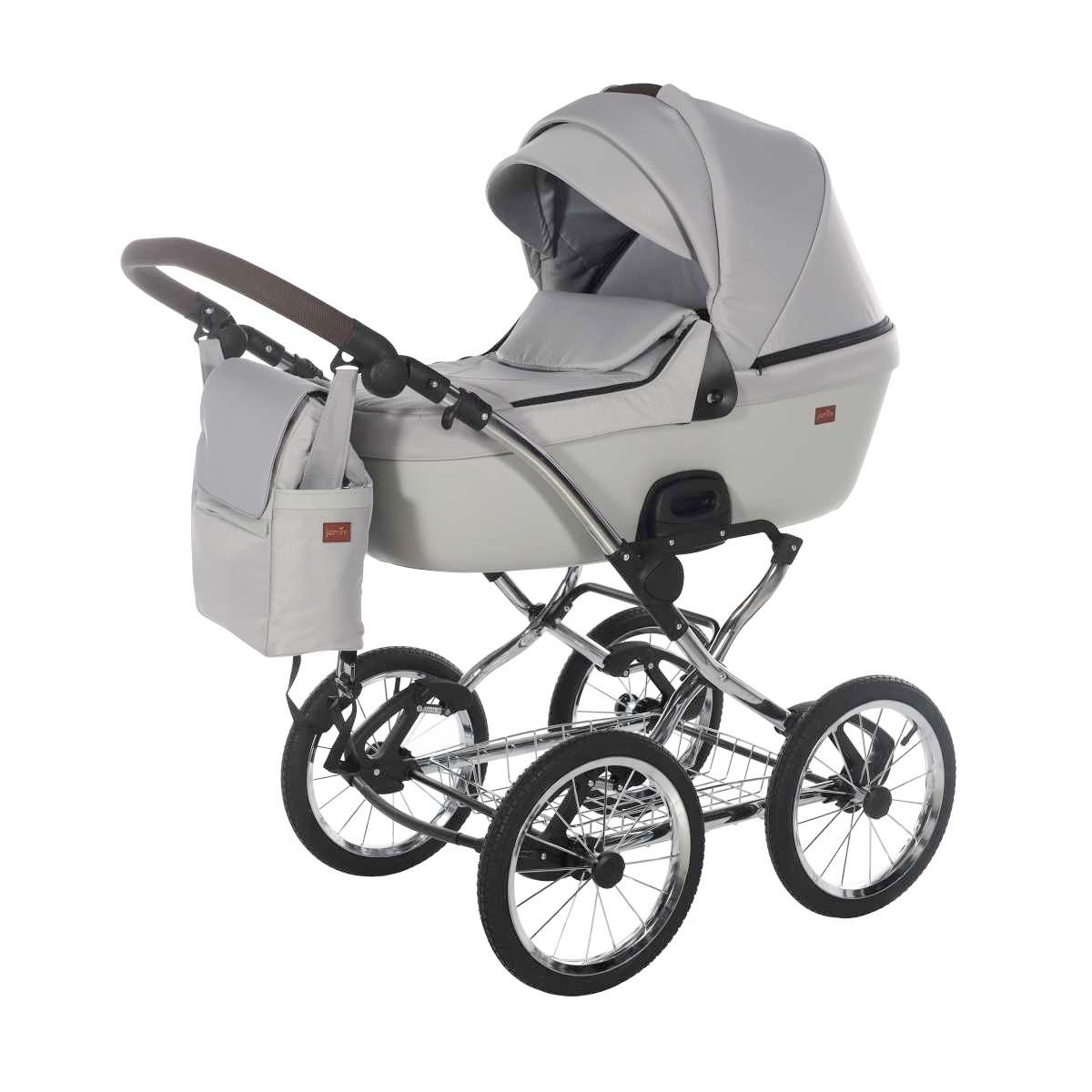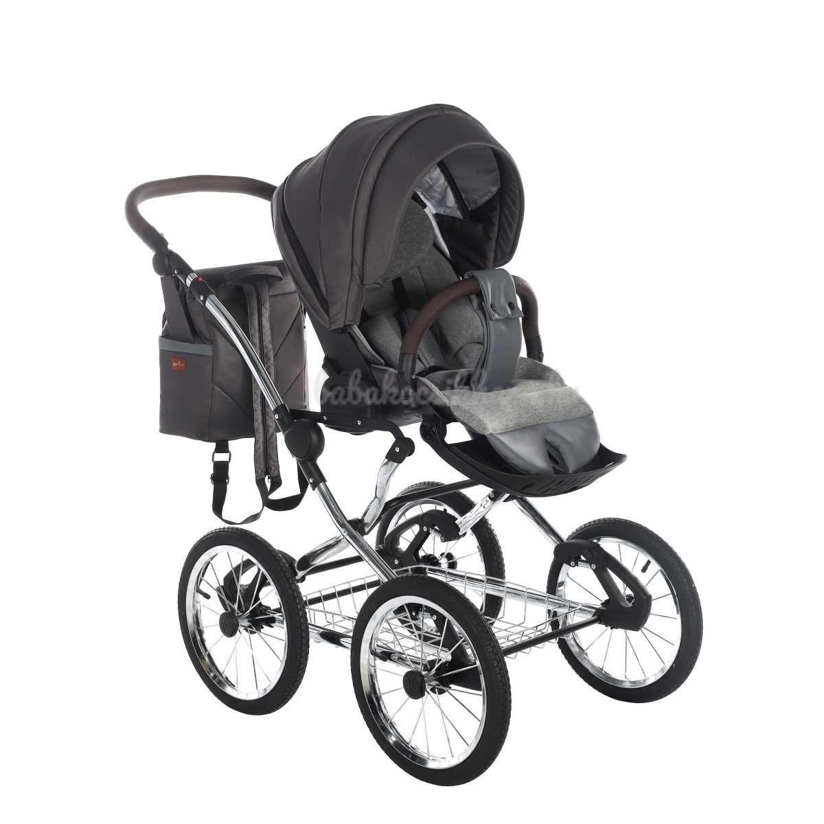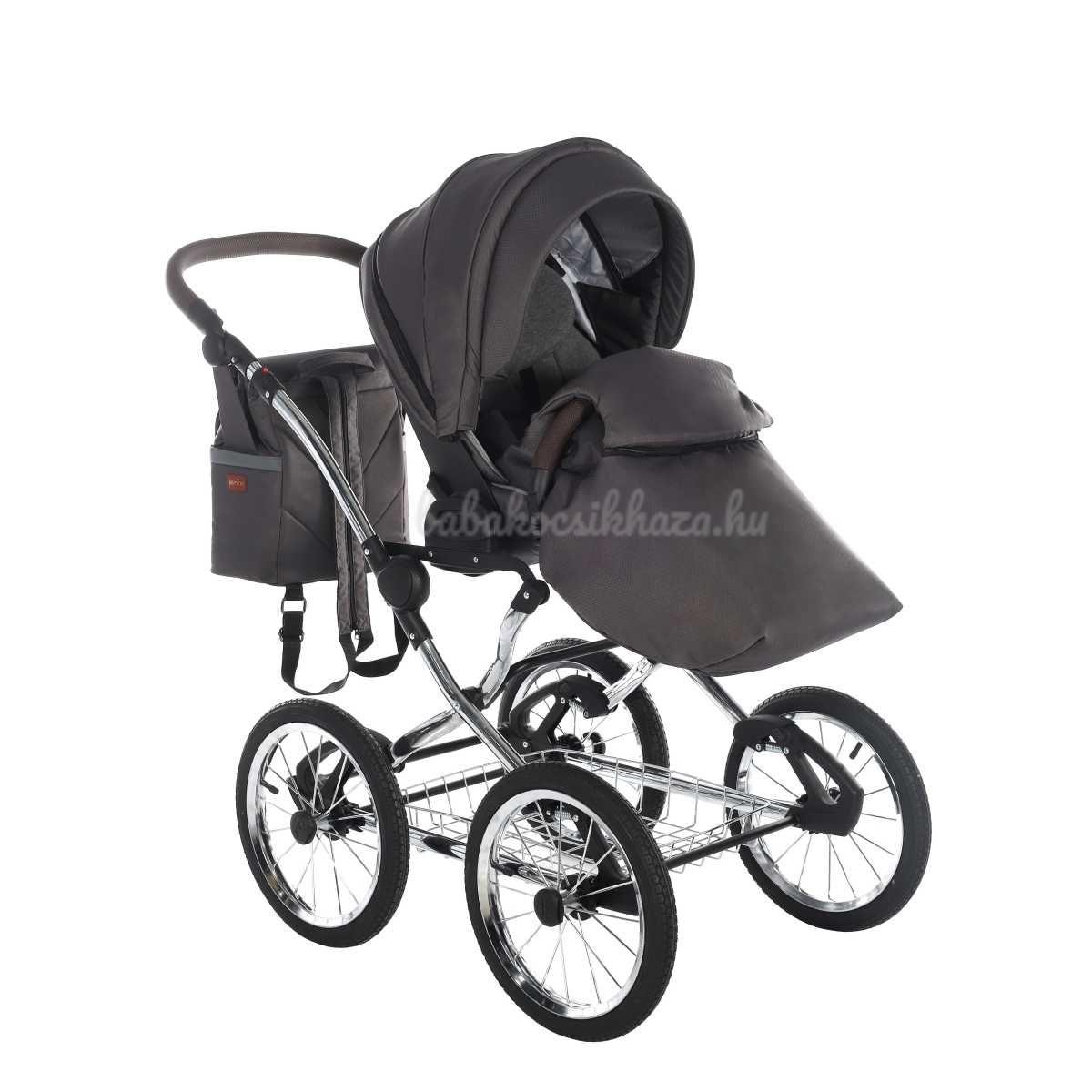 A babakocsi a tágas műanyag mózeskosárnak köszönhetően nagyon kényelmes a gyermekek számára.