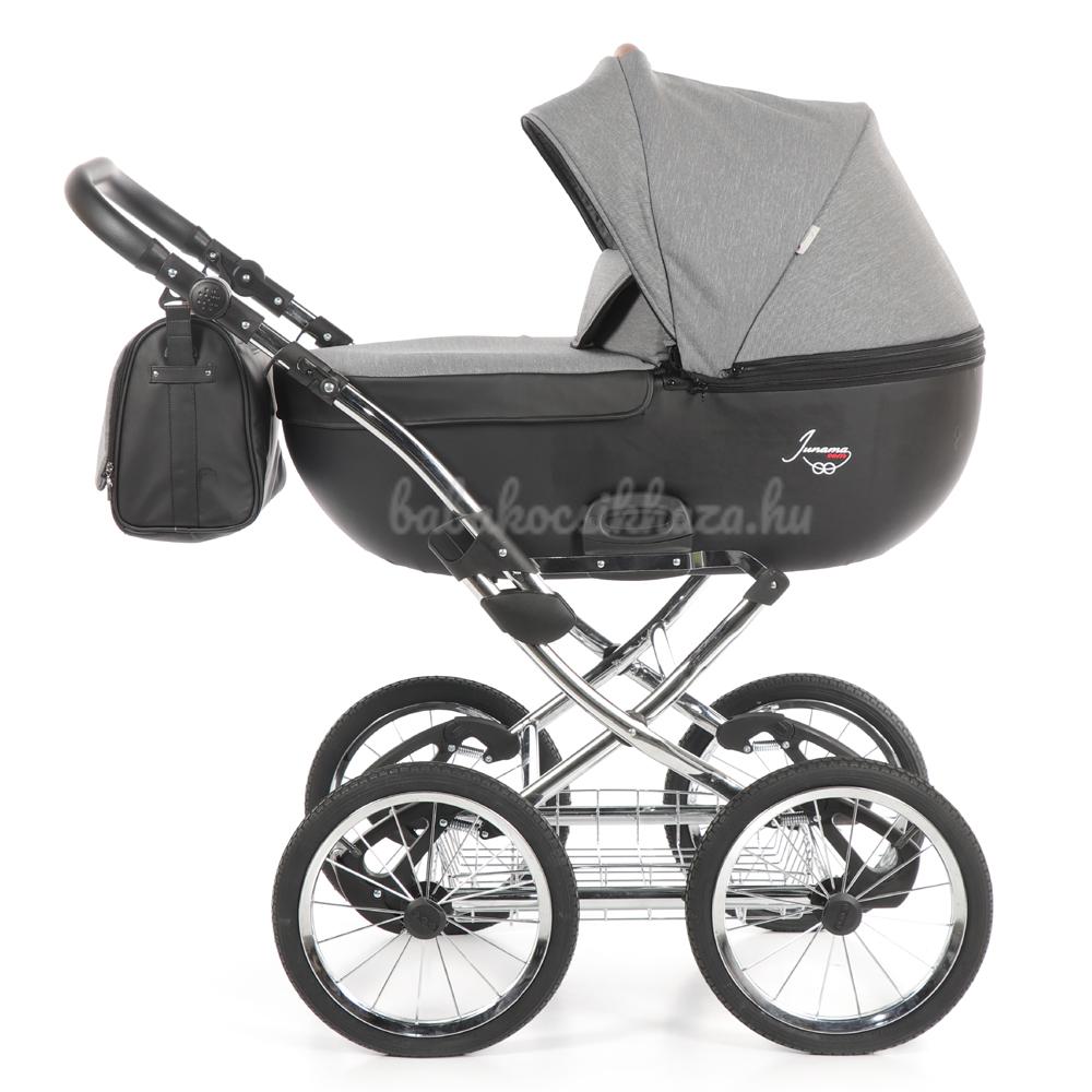 A babakocsi a tágas műanyag mózeskosárnak köszönhetően nagyon kényelmes a gyermekek számára.