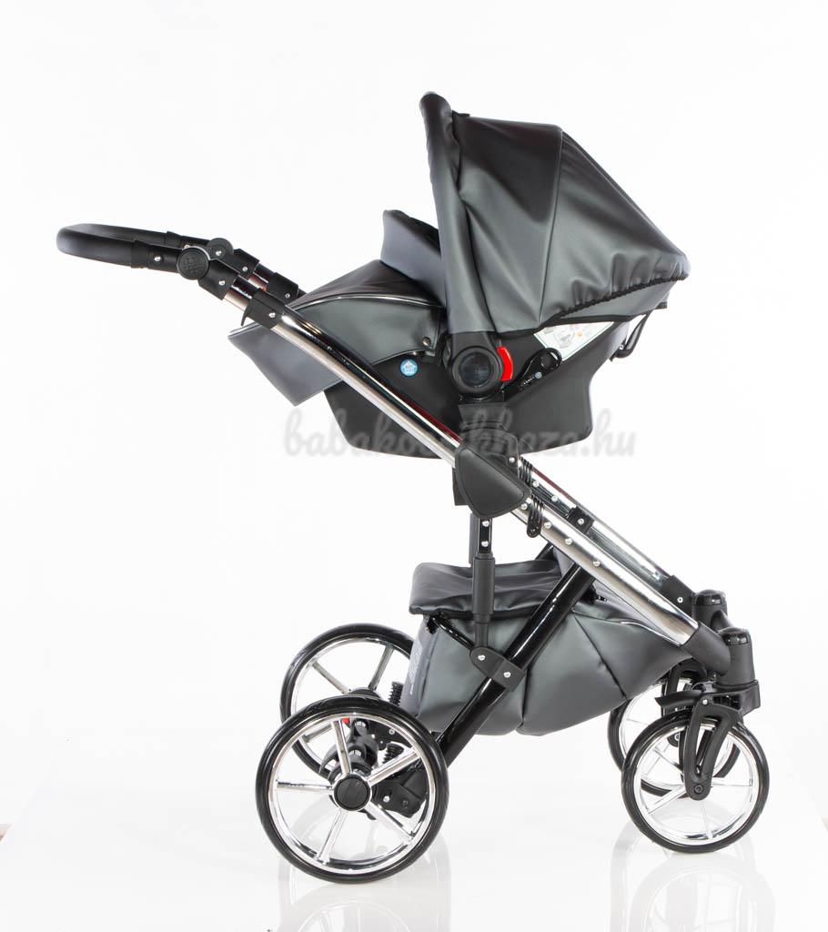 Babahordozó-külön megvehető: 0-10kg-ig (kb.1éves korig) használható, adapter segítségével egy mozdulattal rögzíthető a babakocsi vázszerkezetére, jó oldal- és fejvédelem, kivehető frottír újszülött szűkítőbetét és deréktámasz, kupola, 3 pontos párnázott biztonsági övrendszer központi övfeszítővel, vastag lábzsák (súlya: 2,5kg)