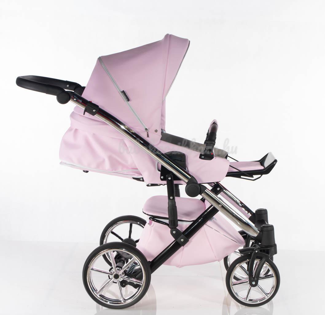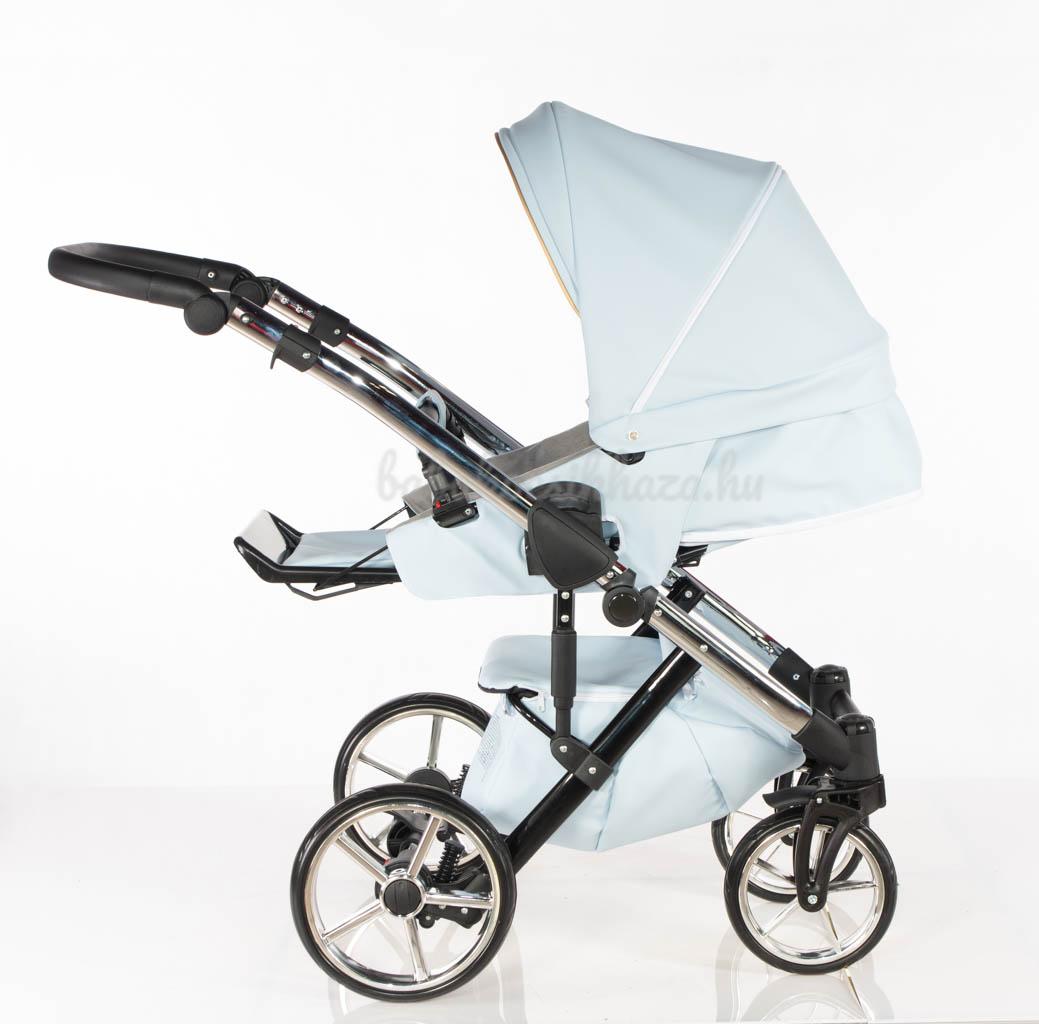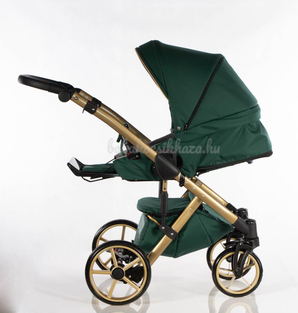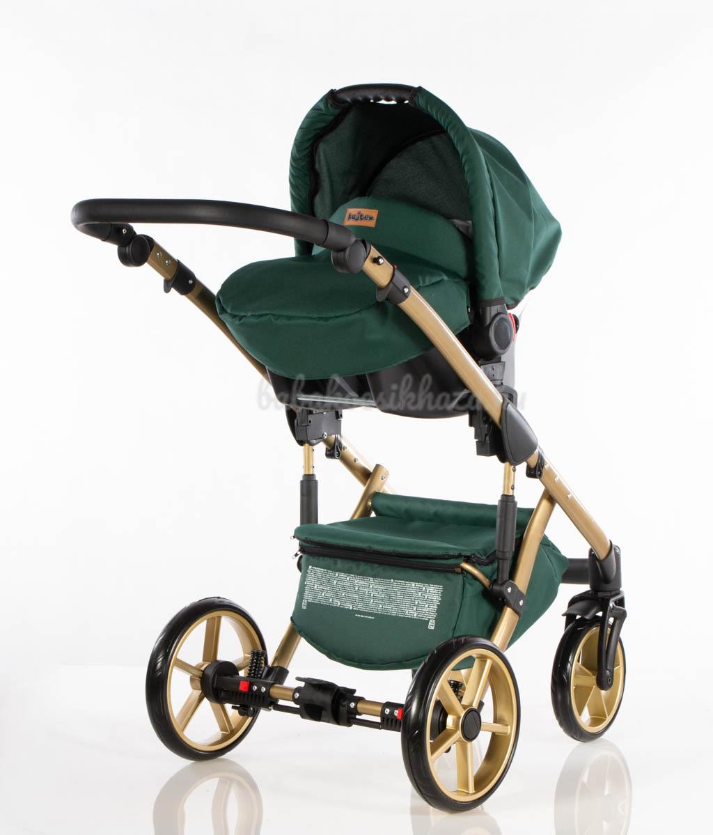Sport rész: Puha téli-nyári kivehető mosható fekvőbetét, 5 pontos párnázott biztonsági övrendszer, nagy méretű ülő-és fekvőfelület, a háttámla 4 fokozatban vízszintesig dönthető, kiesésgátló, állítható kényelmes (bőr) lábtartó, levehető nagy méretű kupola kizippzározható szúnyoghálós szellőzővel, levehető bőr karfa, mely mindkét irányból nyitható, vastag lábzsák(súlya: 3,5kg)