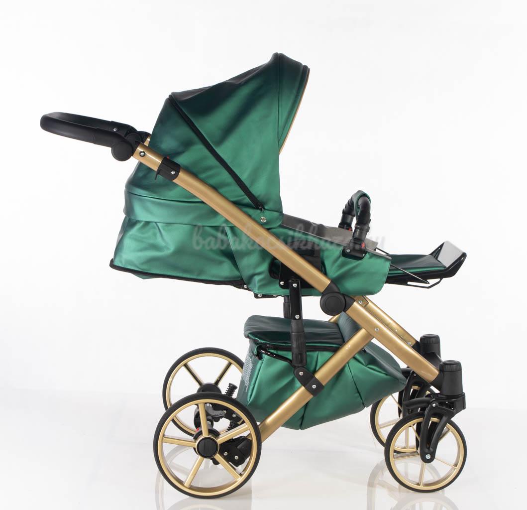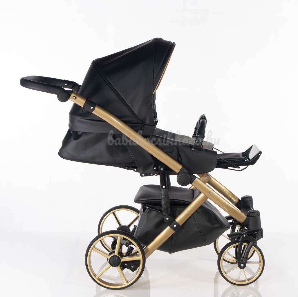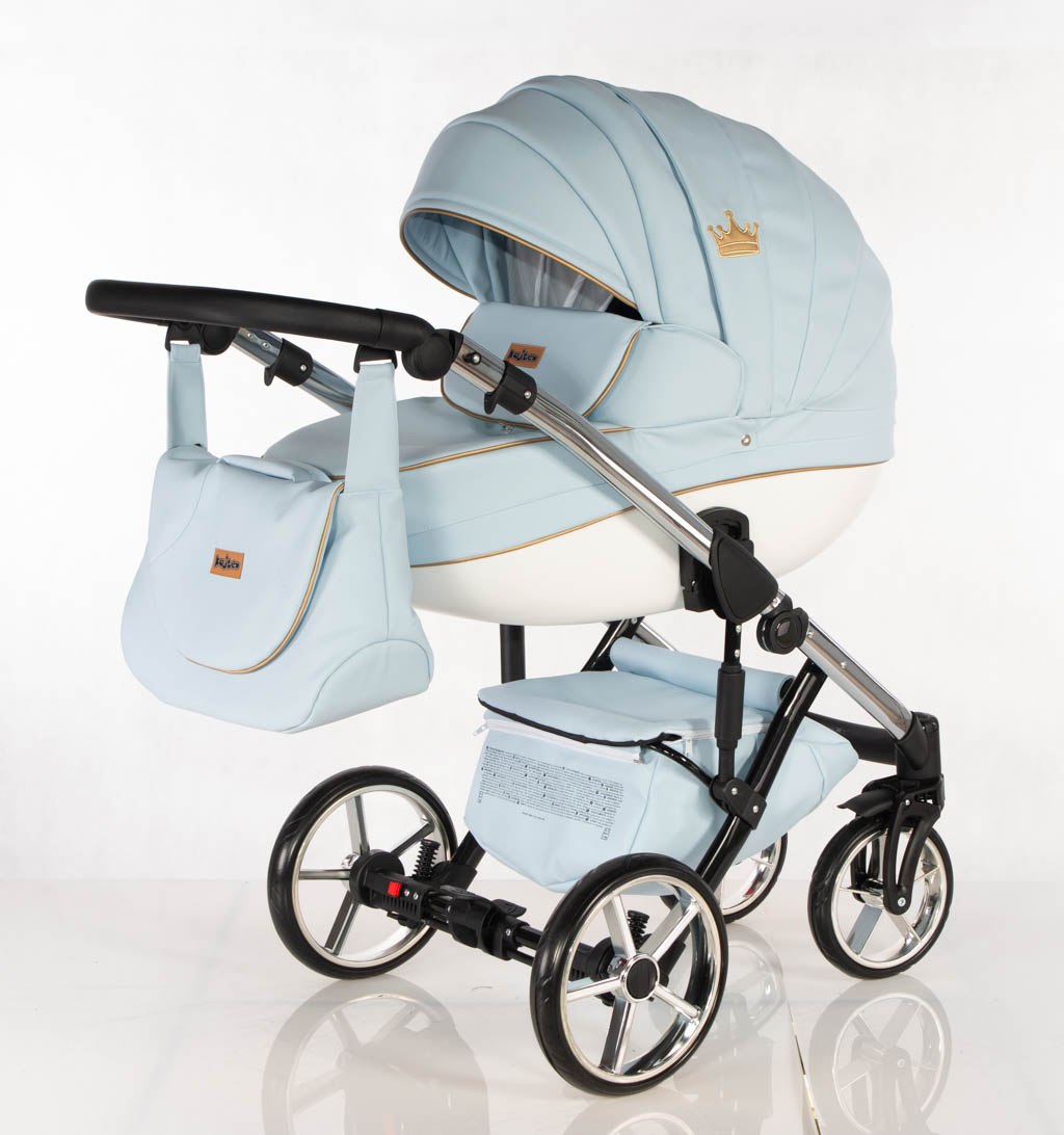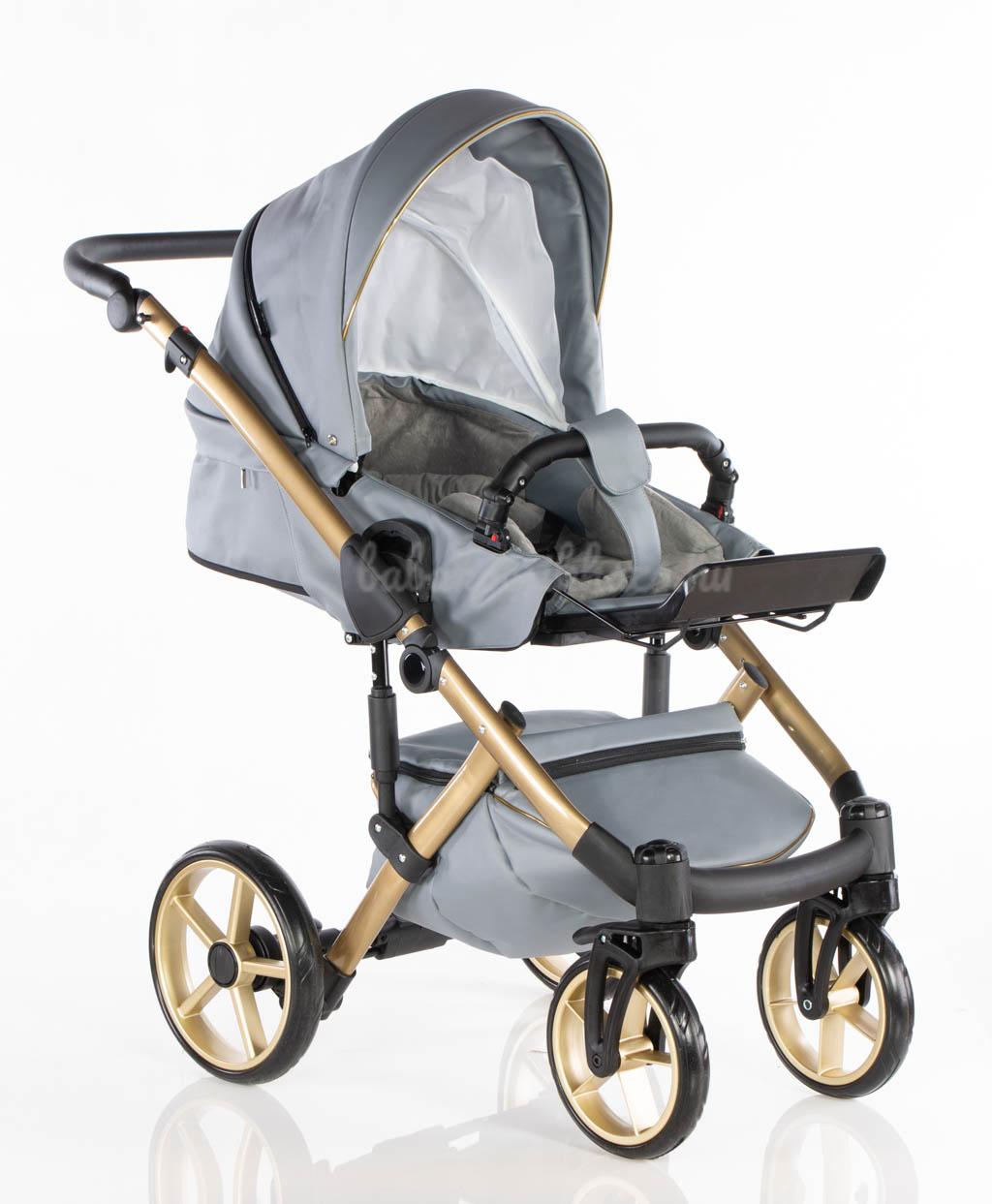 Sport rész: Puha téli-nyári kivehető mosható fekvőbetét, 5 pontos párnázott biztonsági övrendszer, nagy méretű ülő-és fekvőfelület, a háttámla 4 fokozatban vízszintesig dönthető, kiesésgátló, állítható kényelmes (bőr) lábtartó, levehető nagy méretű kupola kizippzározható szúnyoghálós szellőzővel, levehető bőr karfa, mely mindkét irányból nyitható, vastag lábzsák(súlya: 3,5kg)