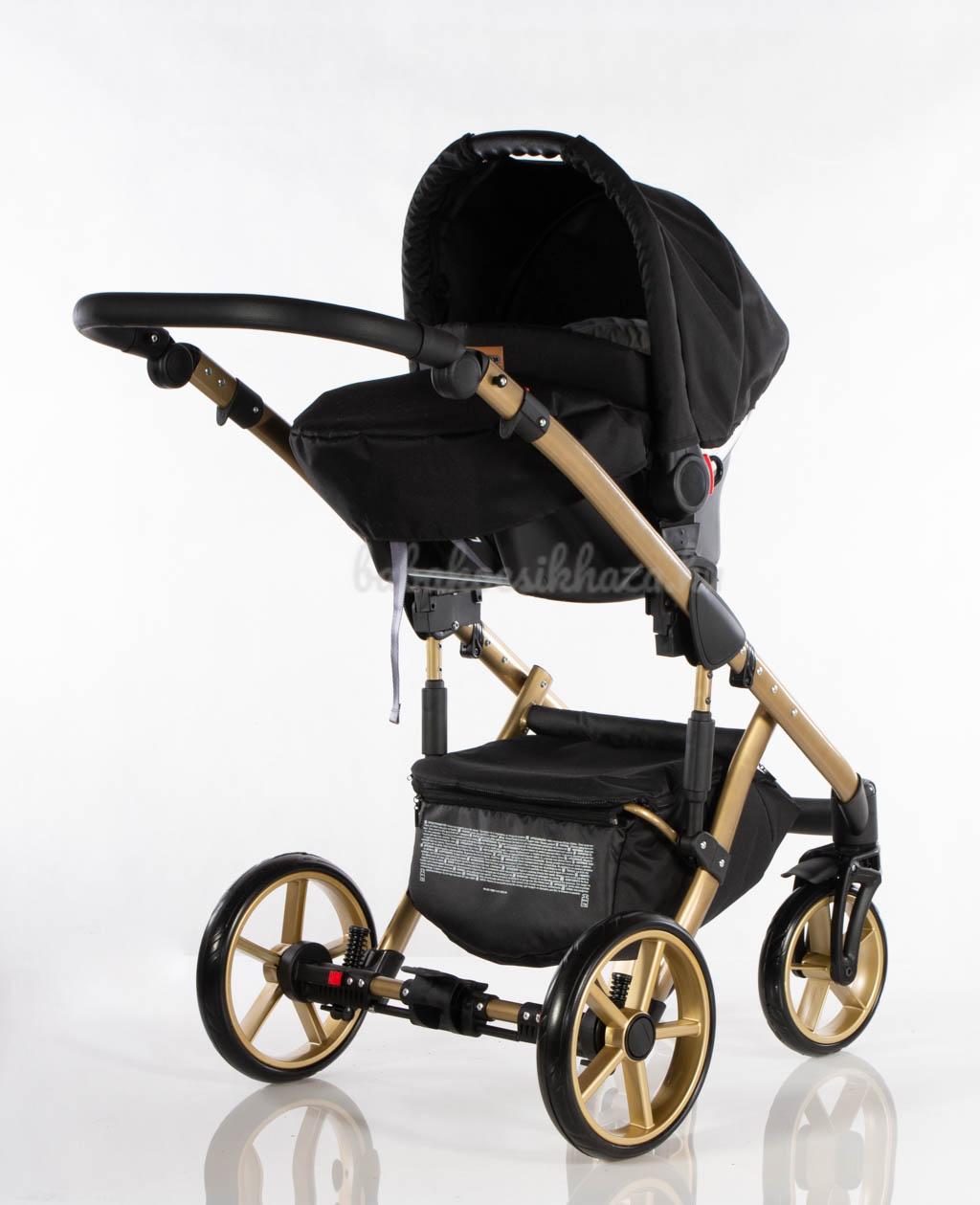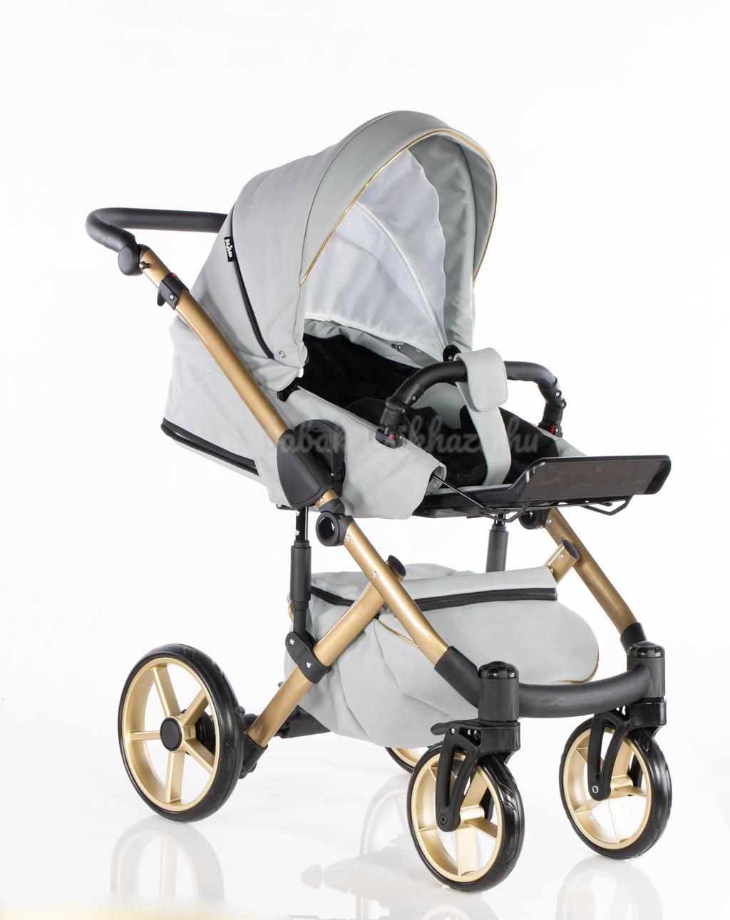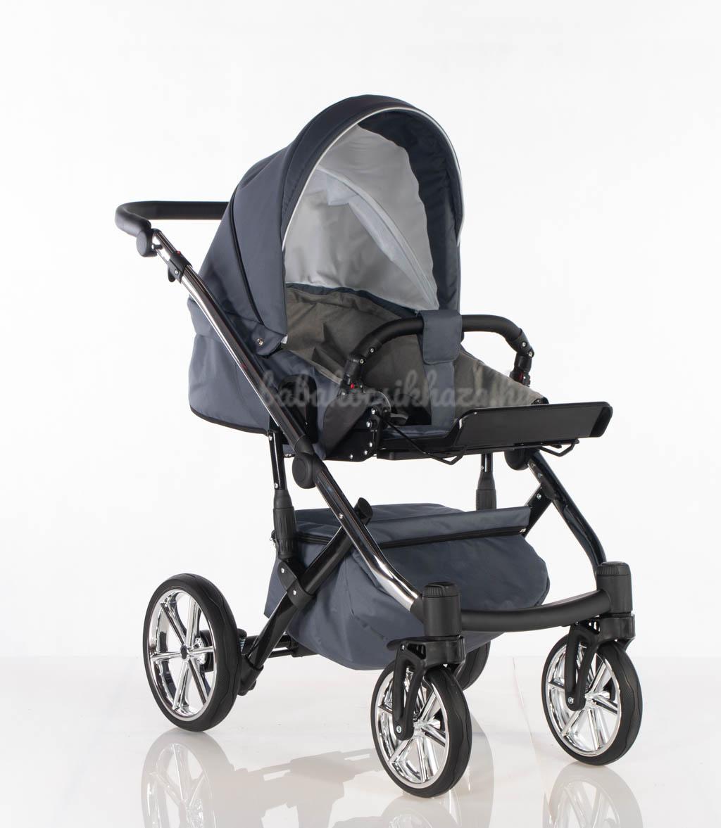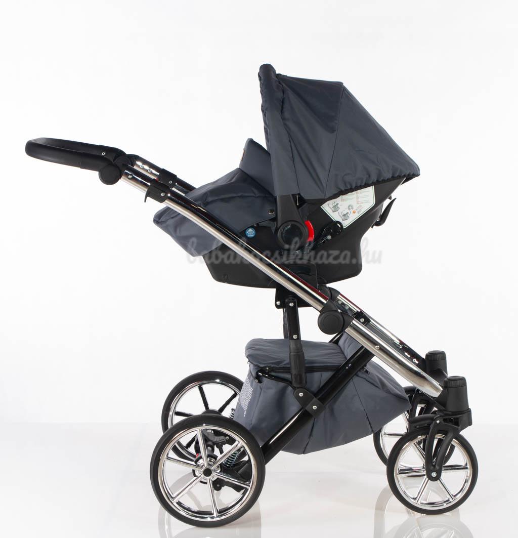 Babahordozó-külön megvehető: 0-10kg-ig (kb.1éves korig) használható, adapter segítségével egy mozdulattal rögzíthető a babakocsi vázszerkezetére, jó oldal- és fejvédelem, kivehető frottír újszülött szűkítőbetét és deréktámasz, kupola, 3 pontos párnázott biztonsági övrendszer központi övfeszítővel, vastag lábzsák (súlya: 2,5kg)