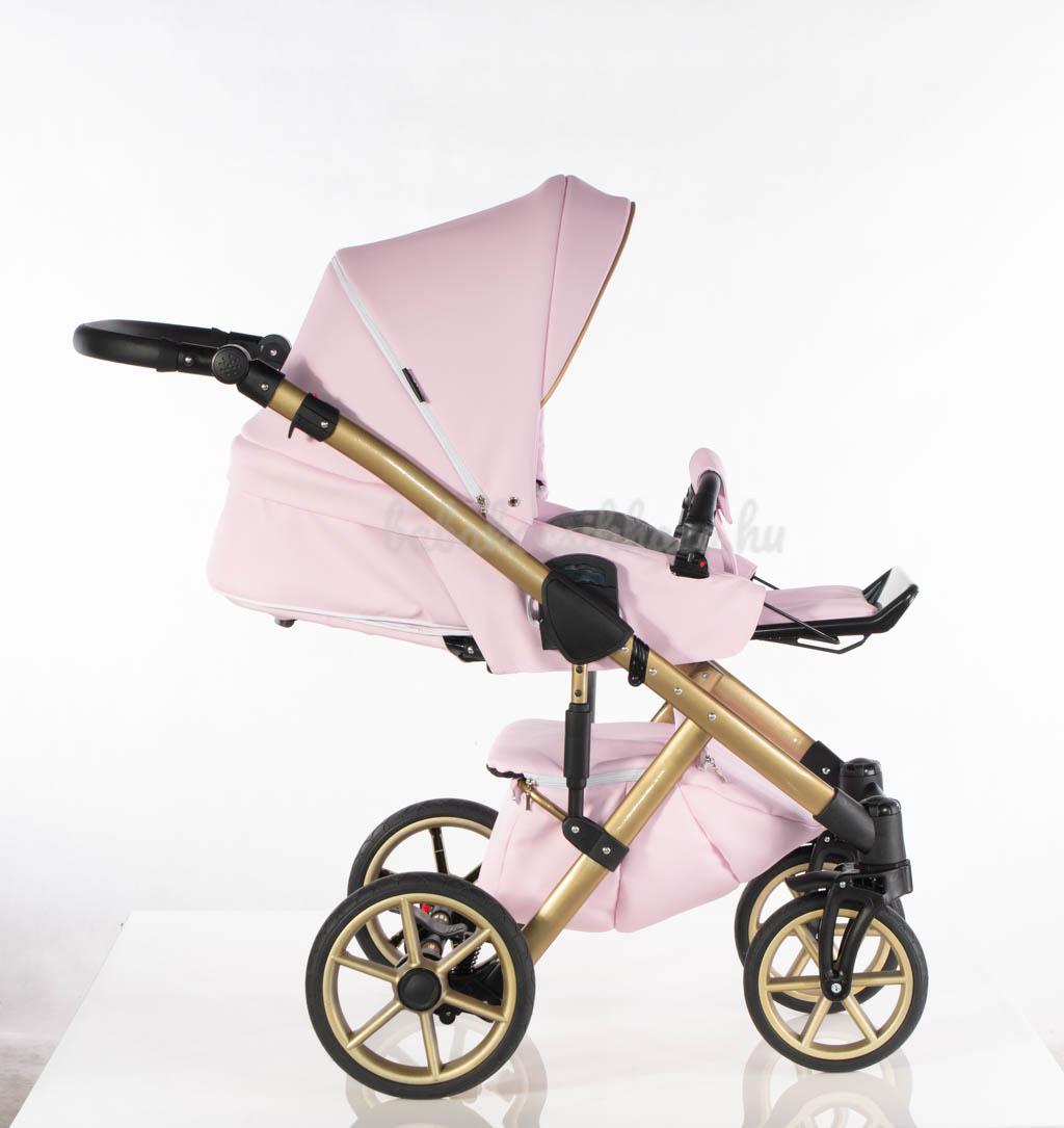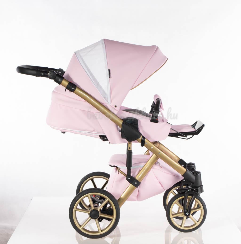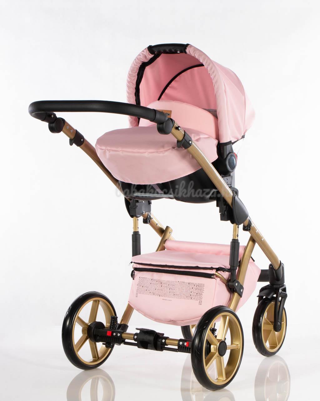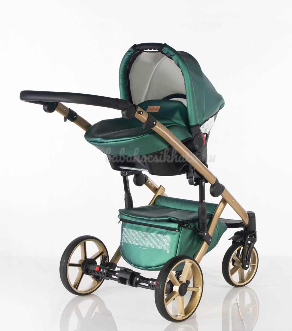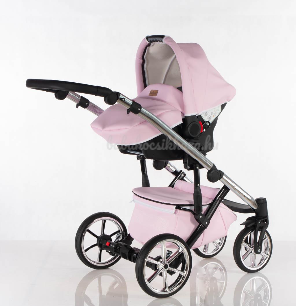 Babahordozó-külön megvehető: 0-10kg-ig (kb.1éves korig) használható, adapter segítségével egy mozdulattal rögzíthető a babakocsi vázszerkezetére, jó oldal- és fejvédelem, kivehető frottír újszülött szűkítőbetét és deréktámasz, kupola, 3 pontos párnázott biztonsági övrendszer központi övfeszítővel, vastag lábzsák (súlya: 2,5kg)