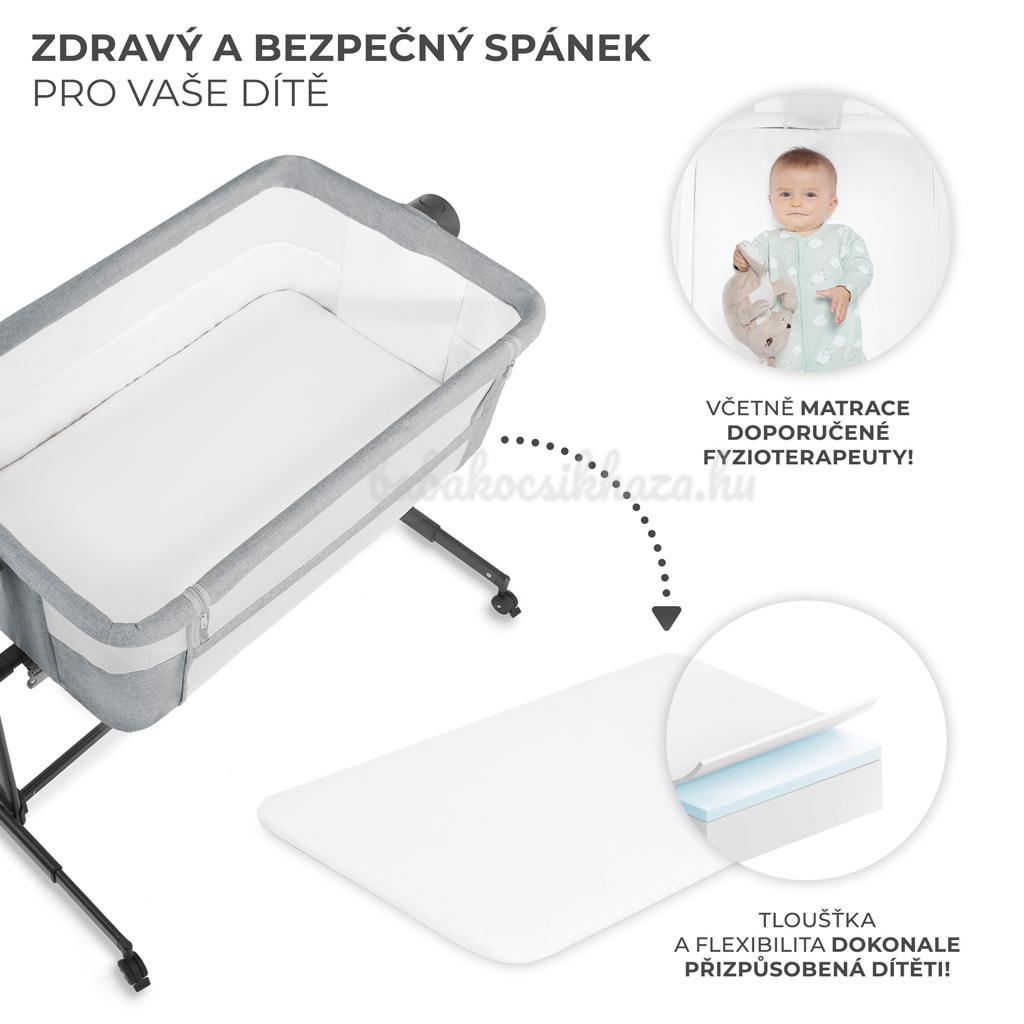 Ideális alkalmazkodás Az ágy magasságának folyamatos és könnyű beállításának köszönhetően a pótágyat egyszerűen hozzáigazíthatja a szülői ágy magasságához. Állítsa be az 5 szint egyikére, állítsa be a lábakat úgy, hogy a pótágy szorosan illeszkedjen az ágyhoz, és rögzítse speciális hevederekkel, hogy biztonságos alvóhelyet hozzon létre gyermekének. Megtartja a saját terét és biztosítja az alvás higiéniáját, de ugyanakkor gyermeke karnyújtásnyira lesz.
