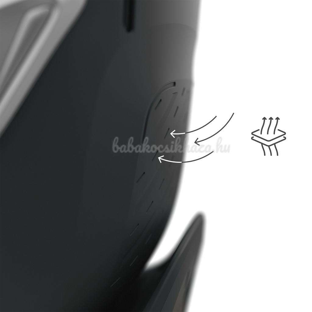 A hőkomfortot a perforált AIR SHELL héj és az AIR FLOW légáramlási rendszer a huzatban biztosítja, amelyek segítenek csökkenteni a gyermek túlmelegedését és izzadását, különösen melegebb napokon. Az autósülés telepítése nagyon intuitív az ISOFIX rögzítők és a támasztóláb révén, míg a helyes telepítési jelzők segítenek a gondozóknak ellenőrizni, hogy az ülés megfelelően van-e rögzítve. A gyermek biztonsága mindig az első helyen áll.