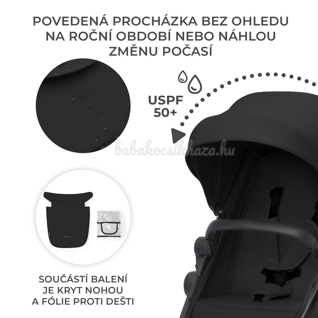 Nagy vízálló napellenző A Newly 4 az 1-ben babakocsi ideális minden évszakban történő sétákhoz. Nagy, vízálló napellenzővel rendelkezik, amely UPF50+ anyagból készült, további napellenzővel. Megvédi gyermekét a széltől, esőtől és hótól, valamint az UV sugárzástól is, miközben árnyékot biztosít a séták során. Tartalmaz egy ablakot is, amelyen keresztül láthatja, mit csinál gyermeked a séták alatt.