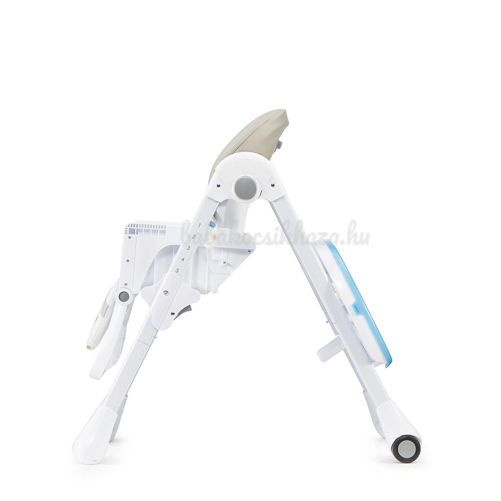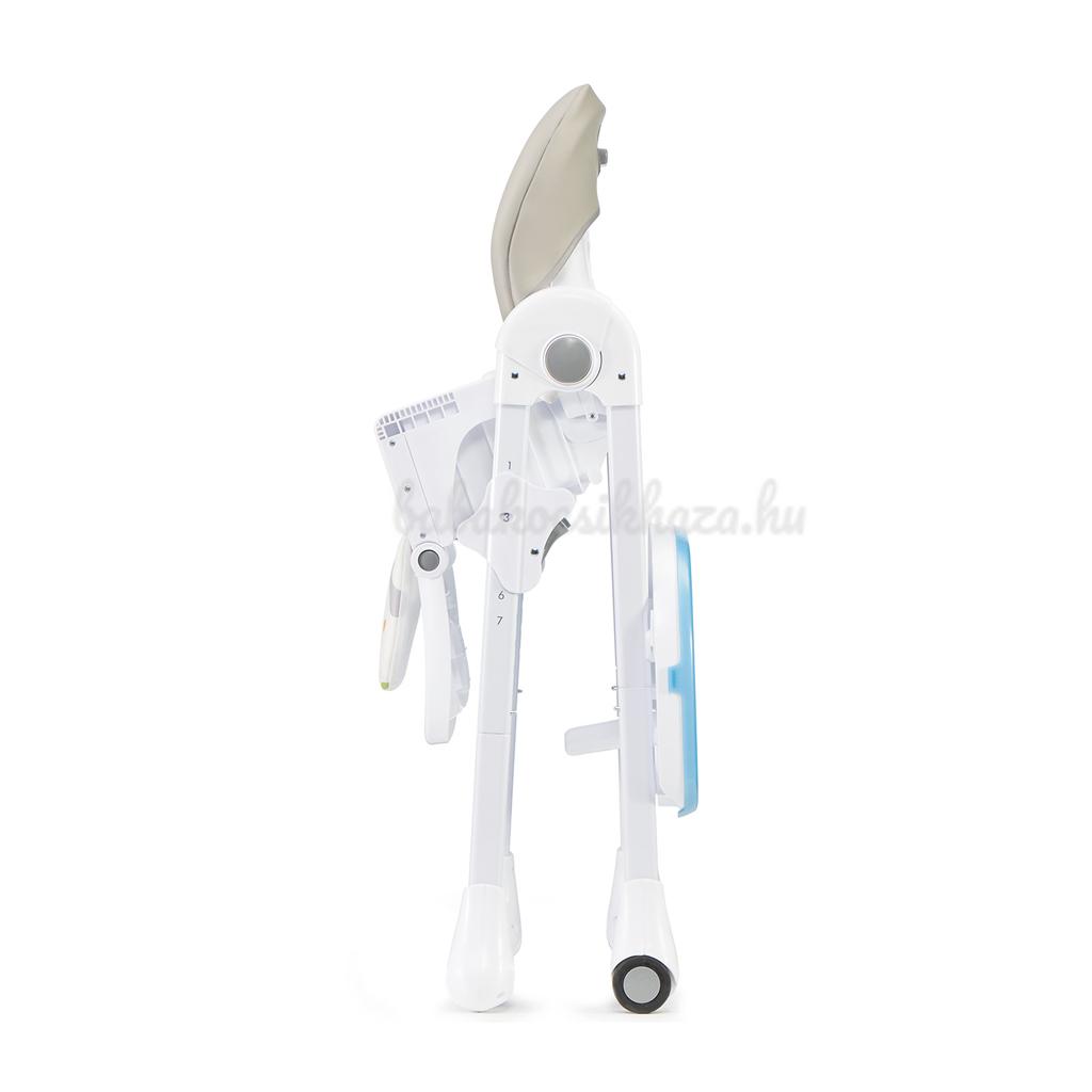 - Állítható tálca – lehetővé teszi, hogy könnyen helyezd a gyermeket a székbe és 3 pozícióban állítsd be a távolságát. A kiegészítő kettős tálcával könnyen tisztítható.