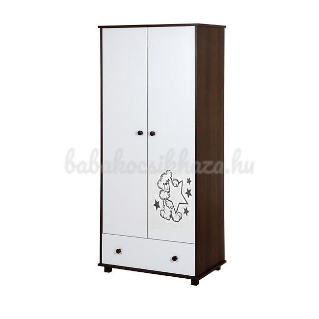 Kiváló minőségű és kialakítású, zsiráf mintás két ajtós szekrény a babák és gyermekek szobájába. Logikus beosztású, nagy mennyiségű ruha és játék pakolható el benne. Akasztós és polcos részt is tartalmaz, alul egy nagy fiókkal. A termék lapra szerelve kerül kiszállításra.