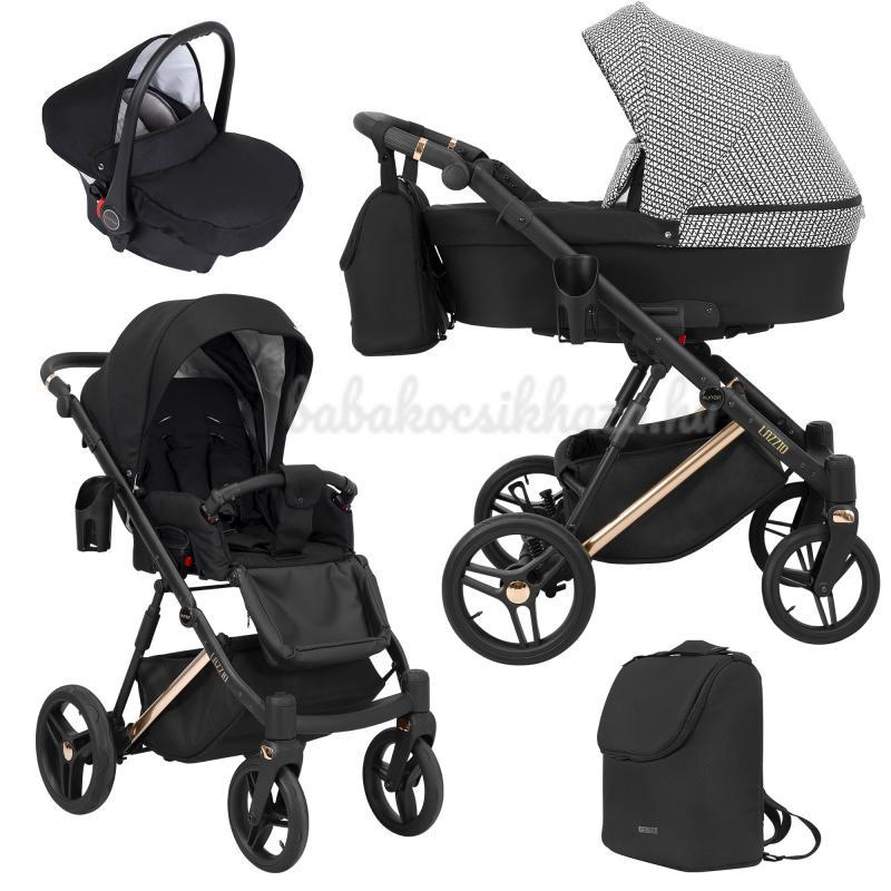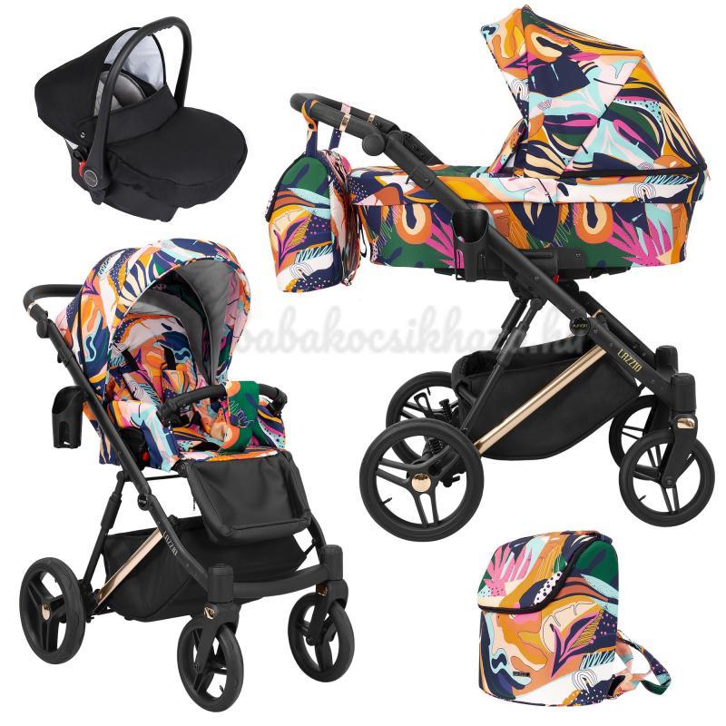 Kiemelkedően sokoldalú multi funkciós babakocsi, amely újszülött kortól használható, egészen a babakocsis időszak legvégéig. Különlegessége, hogy a vázra szükség szerint külön csatlakoztatható a mélykocsi, a hordozó (autósülés) vagy a sportrész. A mélykocsi keményített, így az külön is használható, segítségével a baba mozgatása lényegesen egyszerűbb. A fekvőfelület magasan helyezkedik el, és a kerekek kiváló rugózásából adódóan a rosszabb terepviszonyok esetén sem zökken ki a baba az alvásból. A sportrész használatát csak önállóan ülni tudó babák esetében ajánljuk, körülbelül 7-8 hónapos kortól. A hordozó (autósülés) 0-13 kg között használható. A Lazzio babakocsi tökéletes választás a kezdő anyukák számára, hogy a hétköznapok szerves részét képezve segítséget nyújtson a babák mozgatásában.