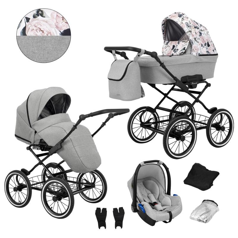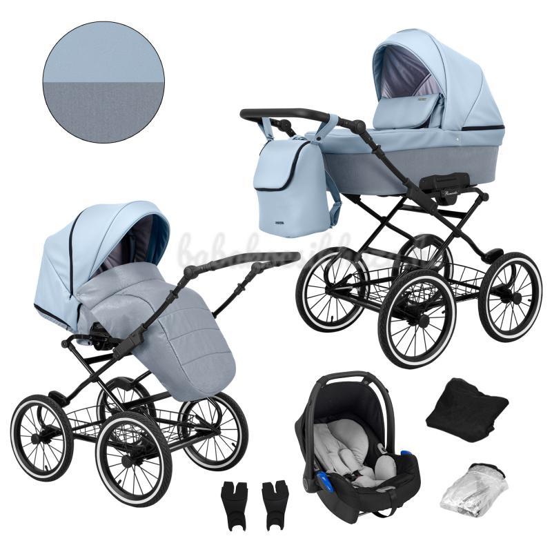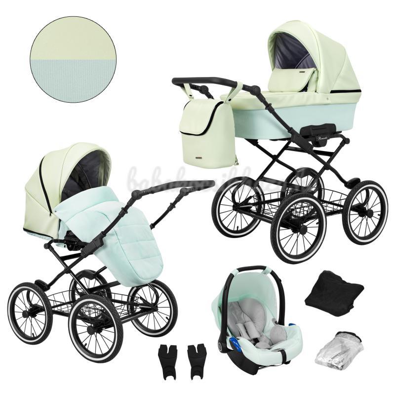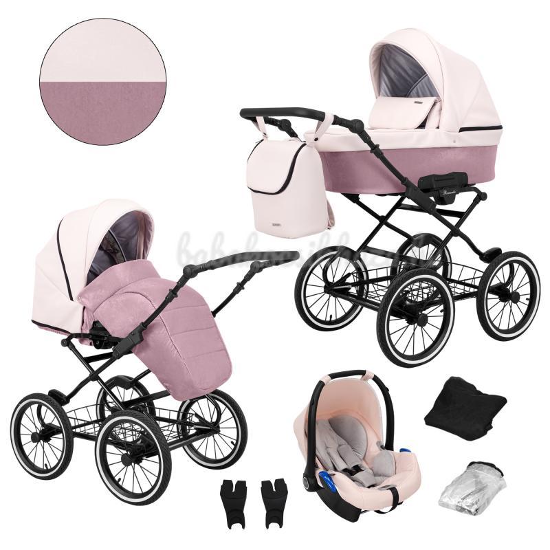 A Romantic Classic babakocsi tökéletesen ötvözi a klasszikus és modern stílust. Könnyen kezelhető babakocsi, amely népszerűségét a nagyméretű, régmúltat idéző kerekeinek, és retro stílusú vázformájának köszönheti. 0 és 36 hónapos kor között ajánljuk.