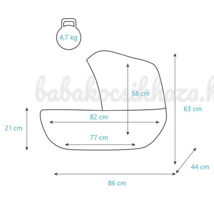 Babakocsi súlya: 15,1 kg (mózeskosárral együtt)
