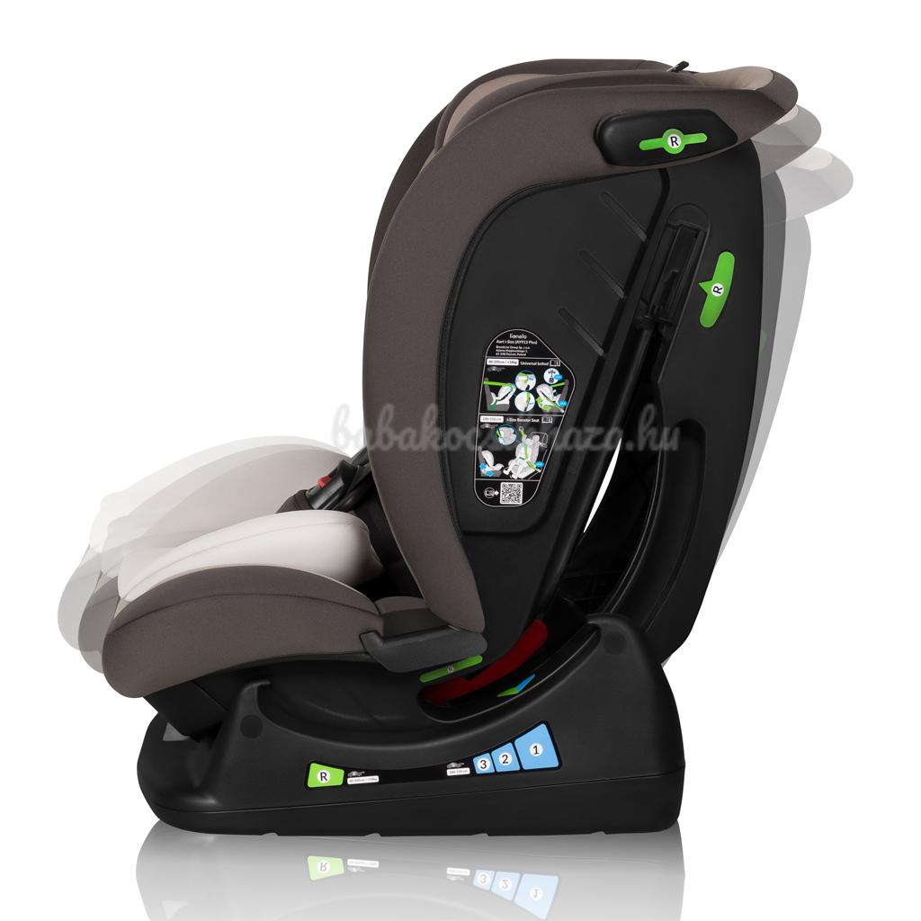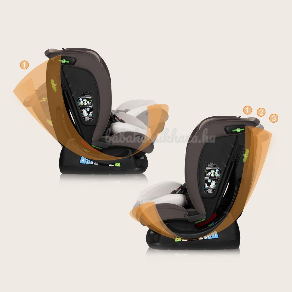Kényelem utazás közben: Az ülés optimális és ergonomikus dőlésszöget biztosít ellenkező irányú helyzetben. A menetirány szerinti rögzítésnél 3 szintű háttámla beállítás lehetővé teszi az ülés helyzetének megváltoztatását, és megvédi a gyermek fejét az alvás közbeni előrebillenéstől.