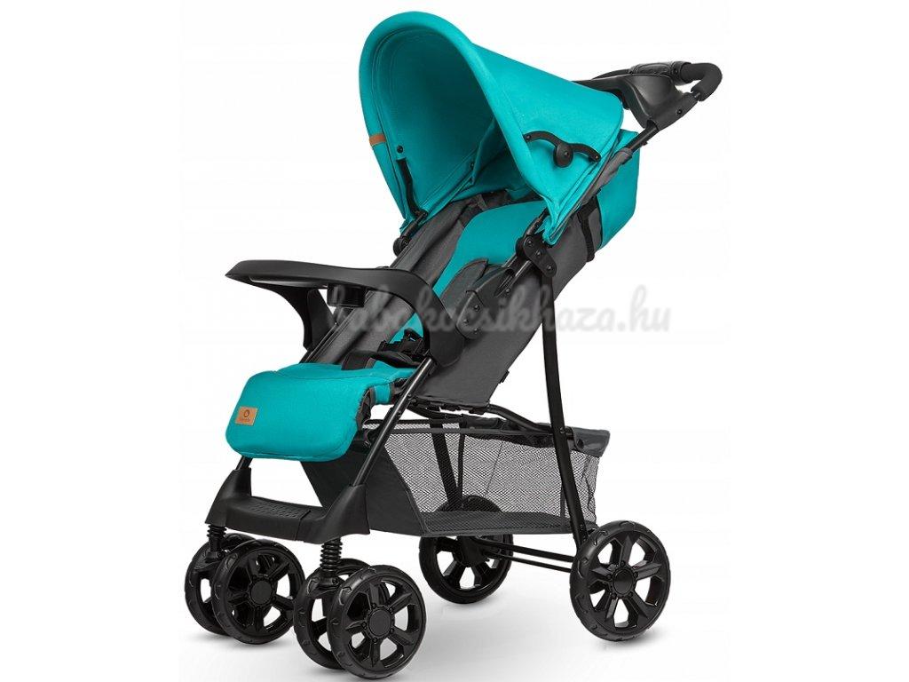 Az elülső tálcán van egy üveg vagy pohártartó és egy hely a játékhoz. Könnyen szétszerelhető. A tálca további védelmet nyújt a babakocsiból való kiesés ellen is.