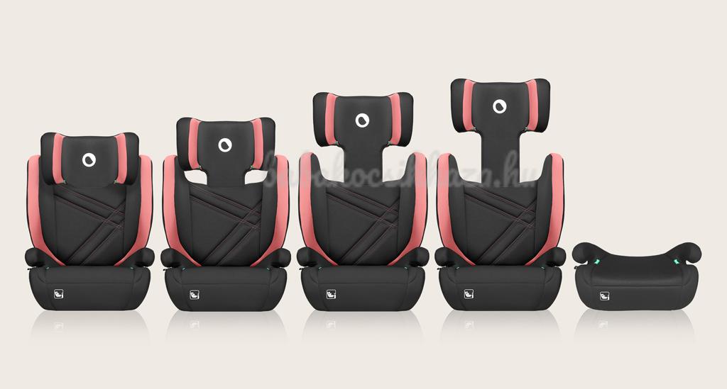Együtt nő a gyermekkel: Az autósülés előre néző pozícióban (FWF) történő rögzítésre lett tervezve. A 100–150 cm-es magassági csoport számára készült. A 100–150 cm-es magassági tartományban a Hugo i-Size ISOFIX rendszerrel és hárompontos biztonsági autóövekkel vagy csak biztonsági övekkel rögzíthető. A 135–150 cm-es tartományban ülésmagasító is használható. A fejtámla 8 pozícióba állítása egy kézzel is elvégezhető, ami hozzájárul ahhoz, hogy az autósülés pozícióját egyszerűen a növekvő gyermek igényeihez lehessen igazítani.