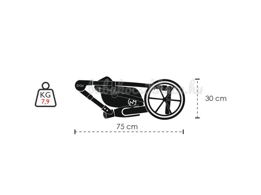 - adapter segítségével egy mozdulattal rögzíthető a babakocsi vázszerkezetére