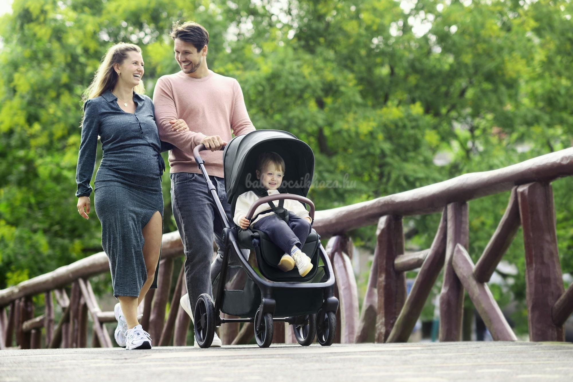 - A gyermeket kényelmesen lehet benne hason altatni, mert a háttámla vízszintesig dönthető