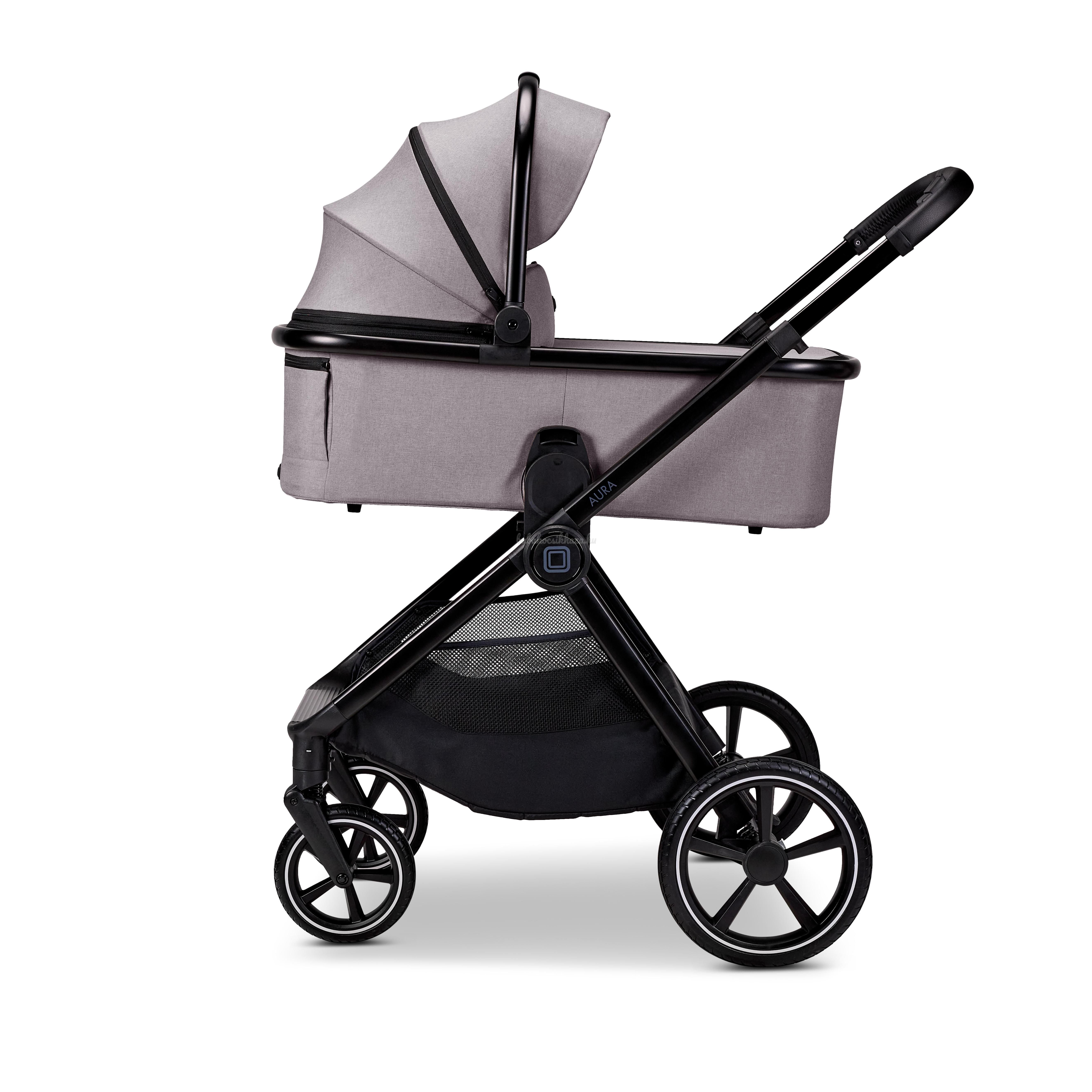 Az AURA az ideális kezdő babakocsi a babakocsik világában – letisztult formatervezésű, funkcionális funkciókkal rendelkező, és olyan fiatal családok számára készült, akik nagyra értékelik a megbízhatóságot, a stílust és a mindennapi használatra való alkalmasságot. Jól átgondolt alapfelszereltségének köszönhetően az AURA az első naptól kezdve elkíséri Önt – könnyen kezelhető és kényelmesen használható. A mellékelt magasságállító adapterek kényelmes, megemelt helyzetbe emelik a mózeskosarat, így a babát hátfájdalom nélkül be- és kiveheti. Akár napi sétáról, akár bevásárlásról van szó: a praktikus bevásárlókosár elegendő helyet kínál mindennek, amire útközben szüksége van – és diszkréten integrálódik a dizájnba. És mivel egy jó kezdéshez több kell, mint egy babakocsi, az AURA mindent tartalmaz, amire a mindennapi élethez szükséged lehet: színben illő pelenkázótáska, esővédő és a mózeskosárhoz illő magasságú adapterek – mindezt mellékelve. A nagy kerekek biztosítják a sima futást még egyenetlen felületeken is. A mellékelt magasságállító adapterek lehetővé teszik a mózeskosár kényelmes, megemelt pozícióját – még kényelmesebbé téve a baba be- és kivételét. Az egyszerű útitársad a kezdetekhez – mindennel, ami számít.