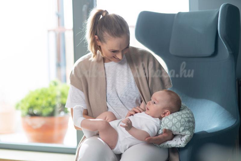 egyedülálló kialakítása biztosítja a maximális kényelmet és stabil támaszt a baba fejének, megkönnyíti az anya nyaki gerincének terhelését – a párnát egyszerűen felhúzhatja bármelyik karjára, ráhelyezi a babát fejjel a párnára és nyugodtan szoptathat, táplálhat palackból, ülhet és pihenhet vagy elaltathatja a gyermeket