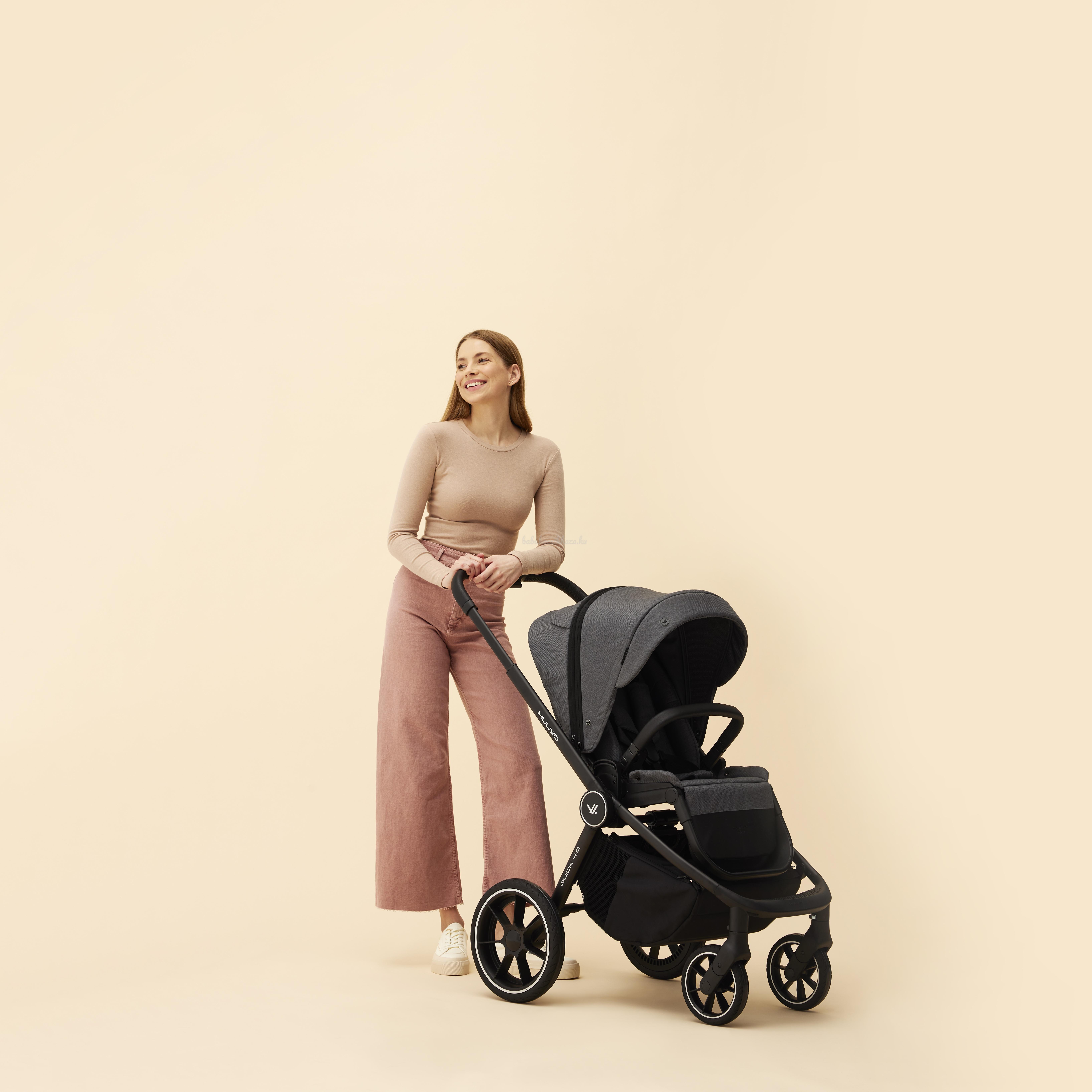 A Quick 4.0 egy jól felszerelt 2 az 1-ben babakocsi nagyméretű gélkerekekkel, jól állítható felfüggesztéssel és számos kényelmi funkcióval a gyermekek és a szülők számára.