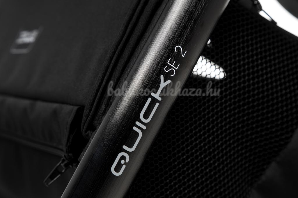 A Quick SE 2 perforált háttámlával rendelkezik, amely bőséges szellőzést biztosít, valamint az UP TO YOU napfénytető magasságállító rendszerrel, amely lehetővé teszi, hogy a babakocsi magasabb gyermekek szállítására is alkalmas legyen. Az ötpontos biztonsági heveder mágneses csattal van kiegészítve, amely megkönnyíti a gyors becsatolást. Tágas mózeskosár Memory Buttons rendszerrel, beépített szúnyoghálóval és cipzáras napellenzővel, mindkettő közvetlenül a vázhoz és a mellékelt magassági adapterekhez rögzíthető.
