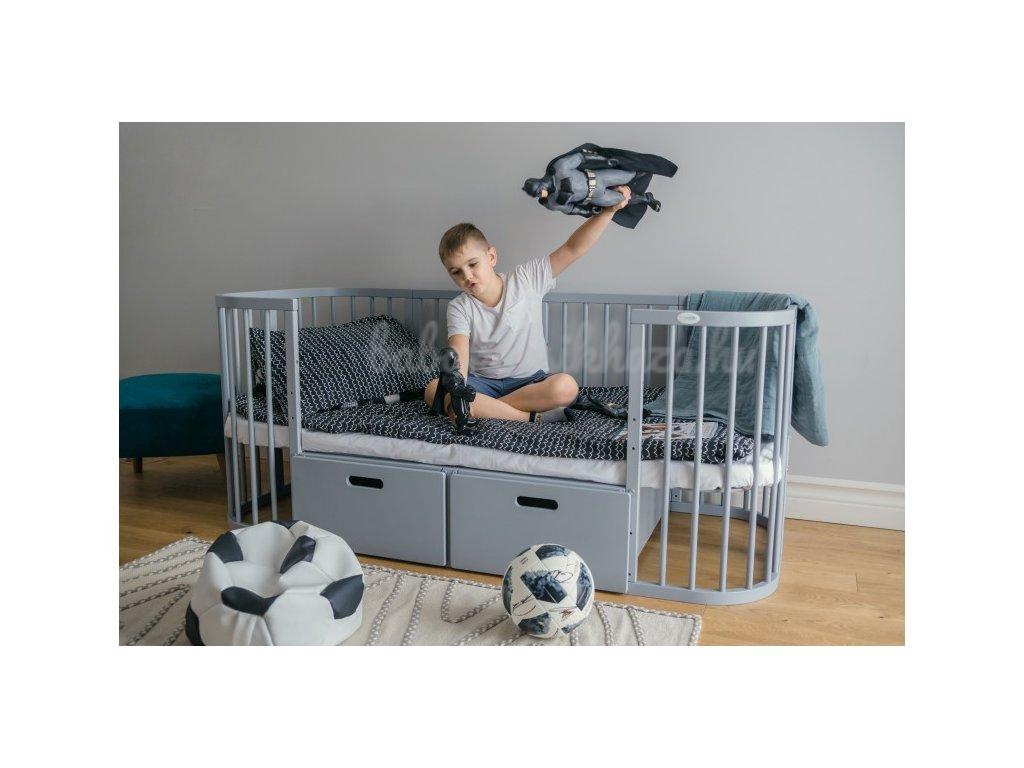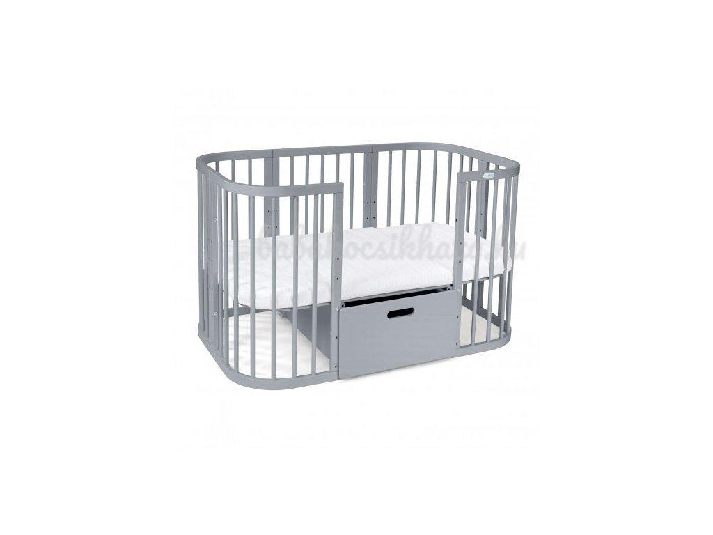 - két polccal ellátott szekrény (a gyermekágy középső része), amely a mini bölcső használatának idején használható gyermekcikkek tárolására, vagy pelenkázóasztalként.