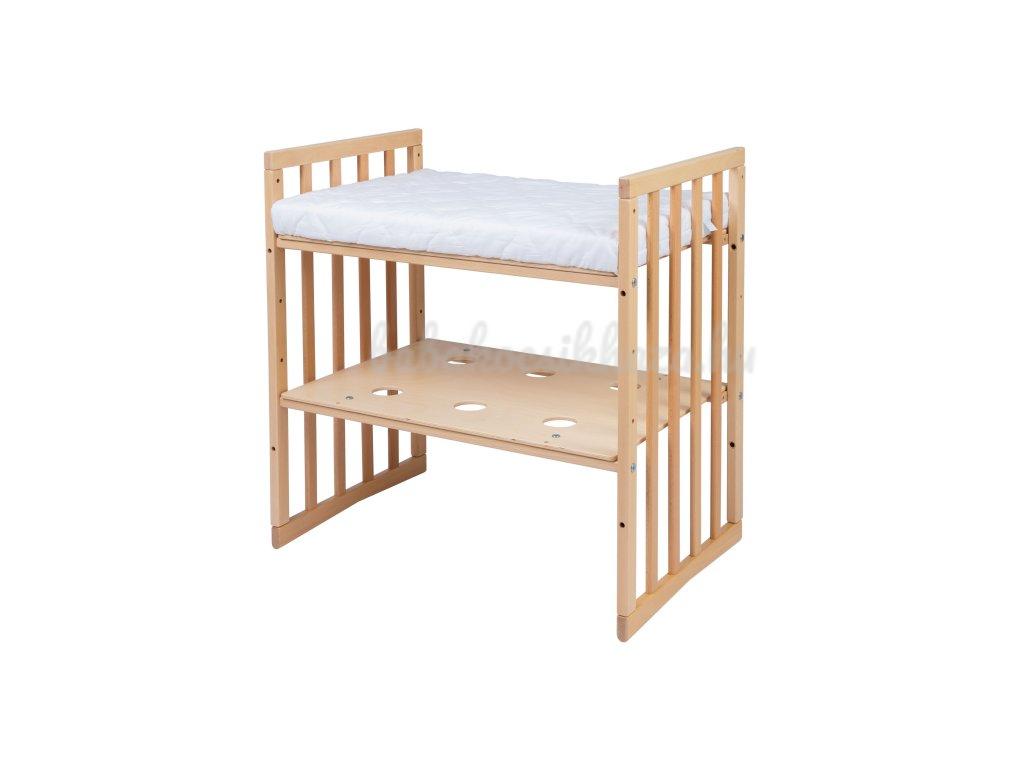 - két polccal ellátott szekrény (a gyermekágy középső része), amely a mini bölcső használatának idején használható gyermekcikkek tárolására, vagy pelenkázóasztalként.