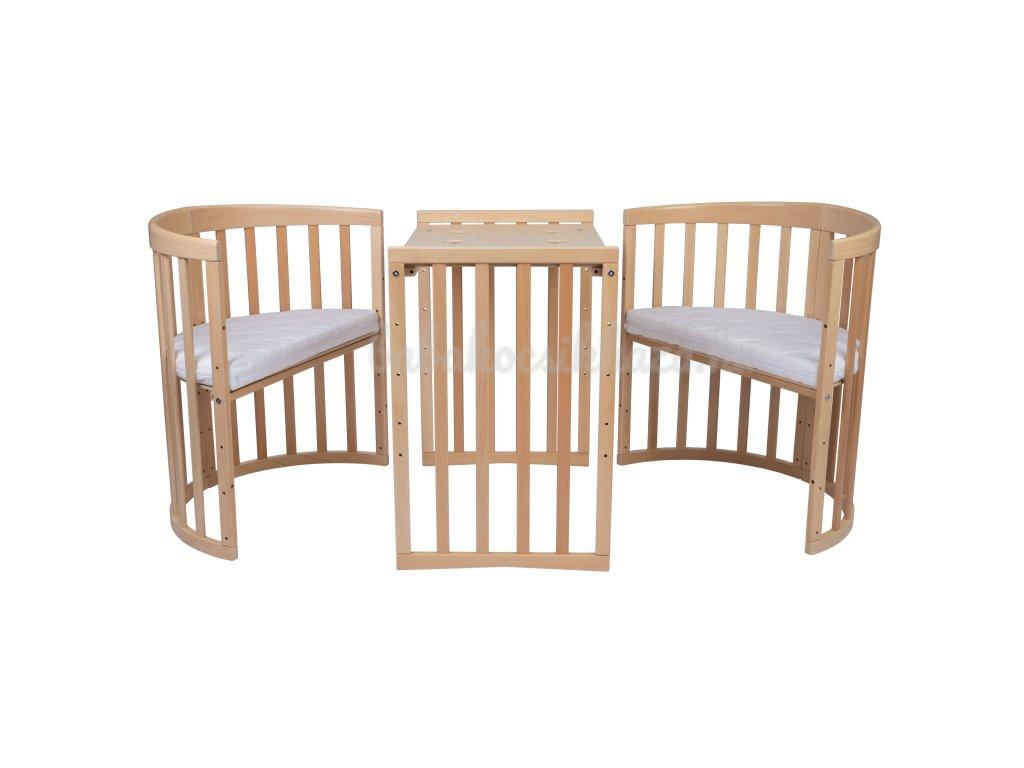 - két polccal ellátott szekrény (a gyermekágy középső része), amely a mini bölcső használatának idején használható gyermekcikkek tárolására, vagy pelenkázóasztalként.
