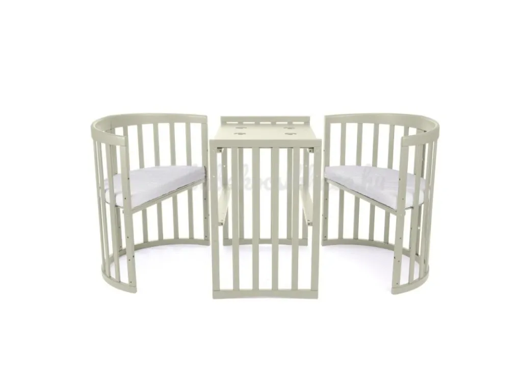 - két polccal ellátott szekrény (a gyermekágy középső része), amely a mini bölcső használatának idején használható gyermekcikkek tárolására, vagy pelenkázóasztalként.