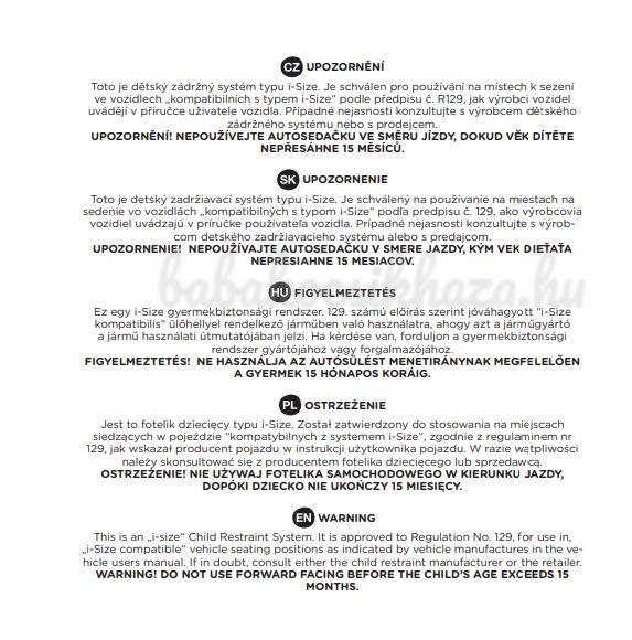 Az ebbe a magassági kategóriába tartozó gyermekek számára az autósülés a menetiránynak megfelelően van elhelyezve, és az isofix segítségével van az autóba szerelve. A gyermeket az autóban az autósülés 5 pontos biztonsági öveivel rögzítheti.