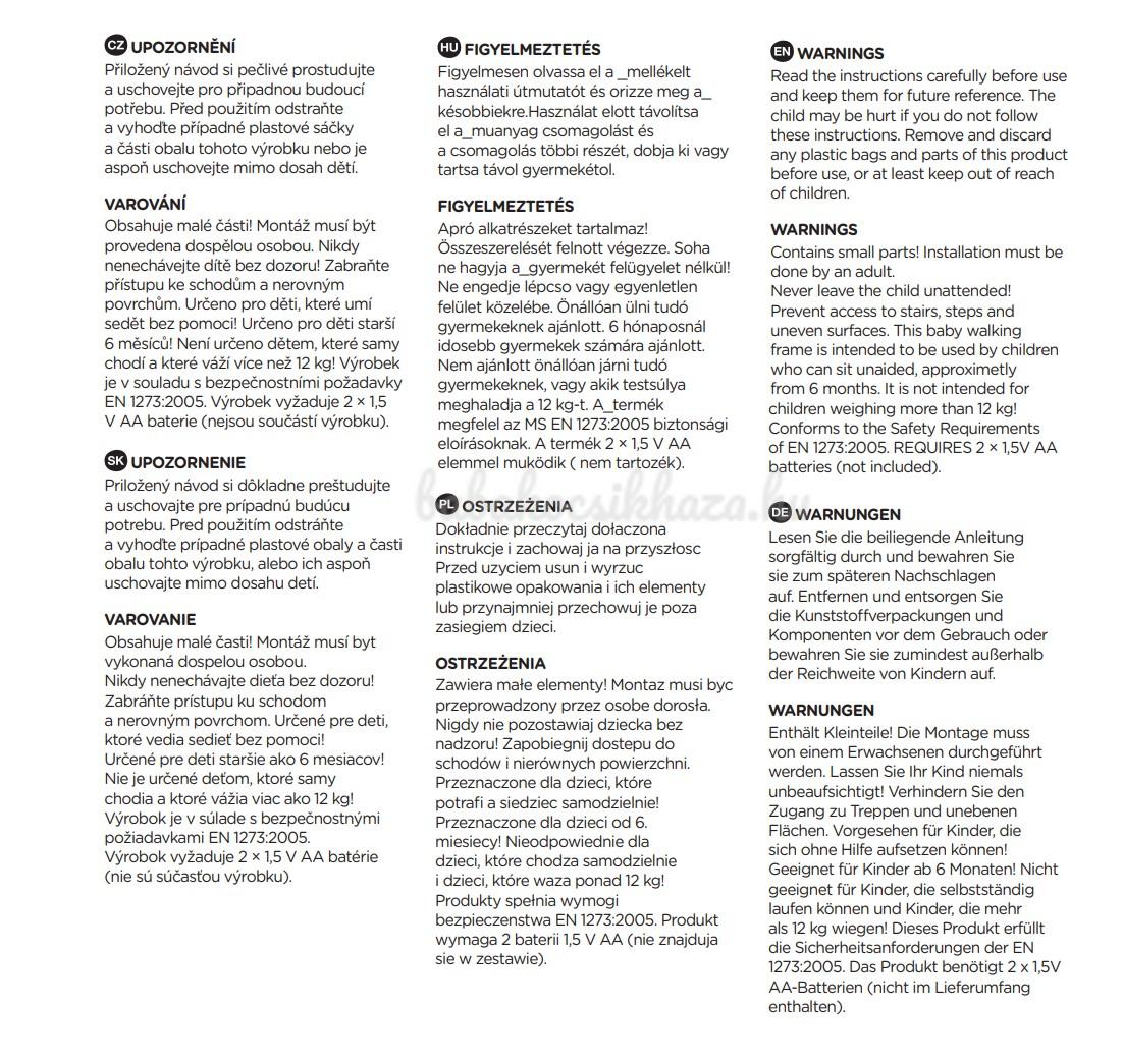 6 hónapos kortól 12 kg-ig ajánlott. A bébikompba csak olyan gyereket helyezzen, aki már önállóan tud ülni, ill. állni. Javasoljuk, hogy a babát csak korlátozott ideig, legfeljebb 20 percig helyezze a bébikompba.