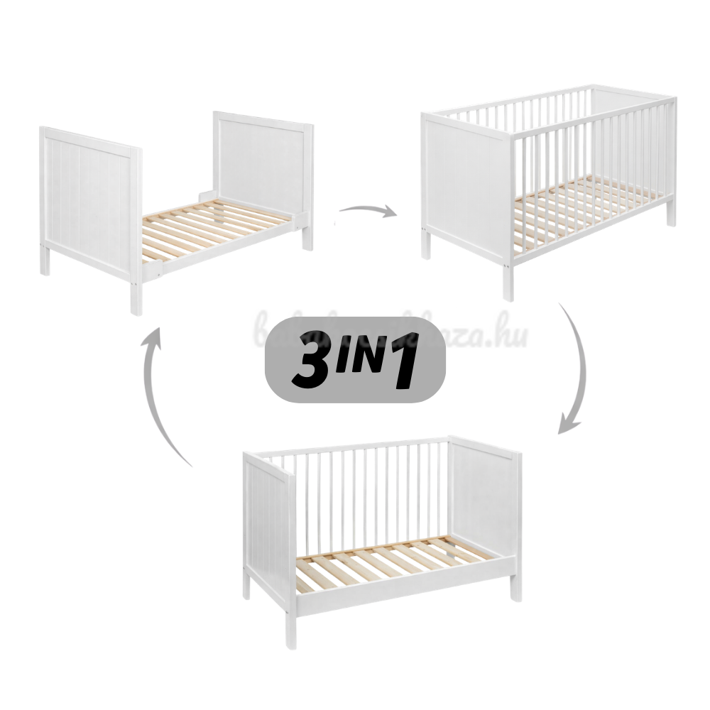 A 3 felhasználási lehetőségnek köszönhetően a kiságy hosszú éveken át biztosít kényelmes alvást a gyermek számára: