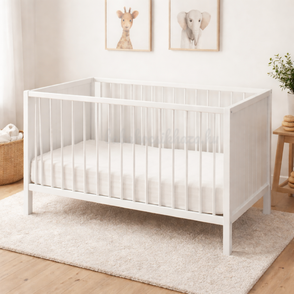 • kiságy négy oldallal és állítható magasságú ágyráccsal