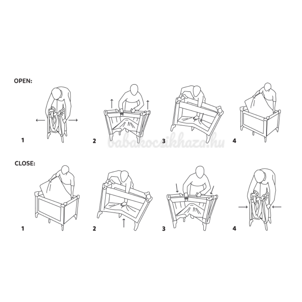 FIGYELMEZTETÉS! Soha ne hagyja a gyermeket felügyelet nélkül. A kiságy/járóka legfeljebb 15 kg súlyú és maximum 86 cm magas gyermekek számára készült.