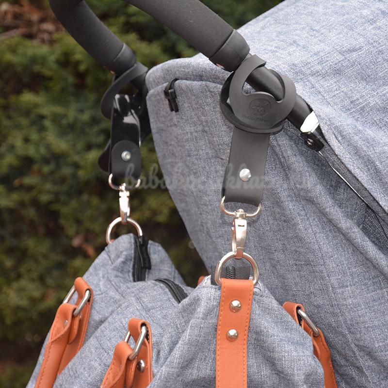 A karabíneres végét egyszerűen fűzze át a karikán, így rögzítve a babakocsi vázához/ fogantyújához.