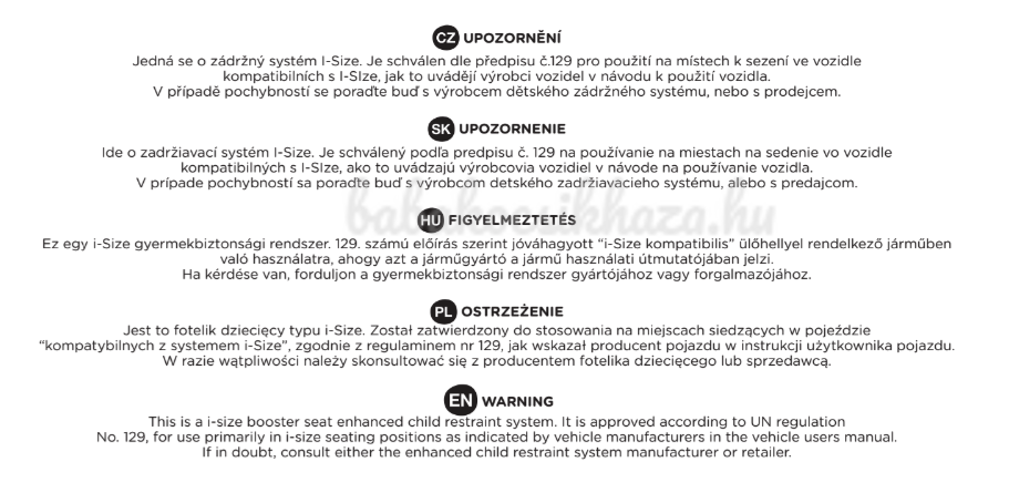 A gyermek biztonságát a jármű hárompontos biztonsági öve biztosítja, amellyel a gyermek az autósülésbe van rögzítve. Az ülésmagasító vezetőcsattal van felszerelve az övek egyszerű és biztonságos beállításához, hogy ne legyen túl magas (a nyak fölött) vagy túl alacsony (a váll alatt). Nagyon praktikus a könnyű szerkezetének, mosható huzatának és kartámaszainak köszönhetően.