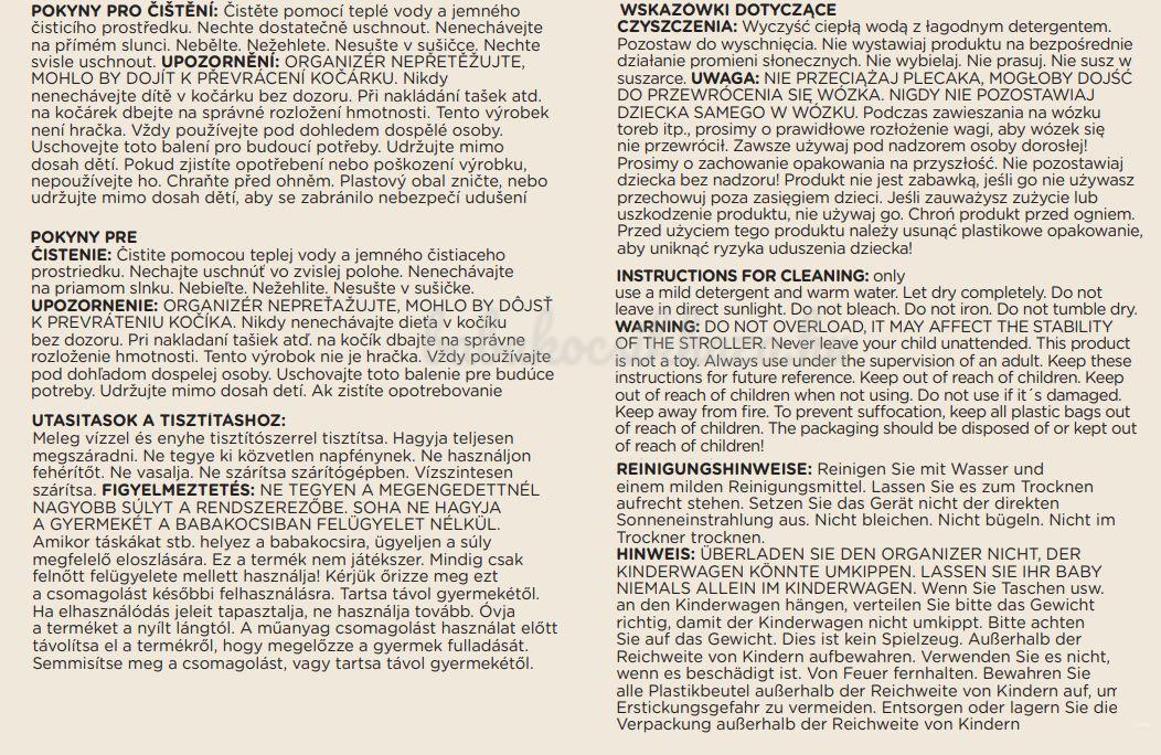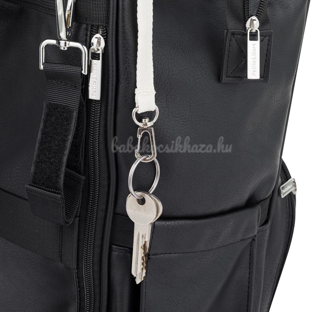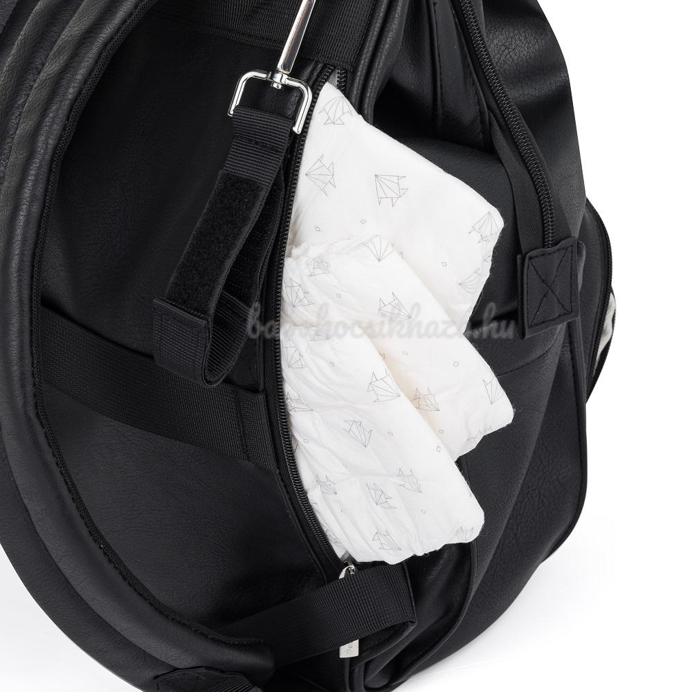 A hátizsák kevesebb mint egy kilogrammot nyom, és kiváló minőségű, vízálló PU anyagból készült a stabilitás és a hosszú élettartam érdekében. Az oldalsó levehető pántok lehetővé teszik a hátizsák könnyű rögzítését bármilyen márkájú babakocsira. A vállpántok extra habréteggel biztosítják a kényelmet hosszú távú viselés esetén is, és a világos színű belső bélés megkönnyíti a szükséges dolgok gyors megtalálását és a rend fenntartását.