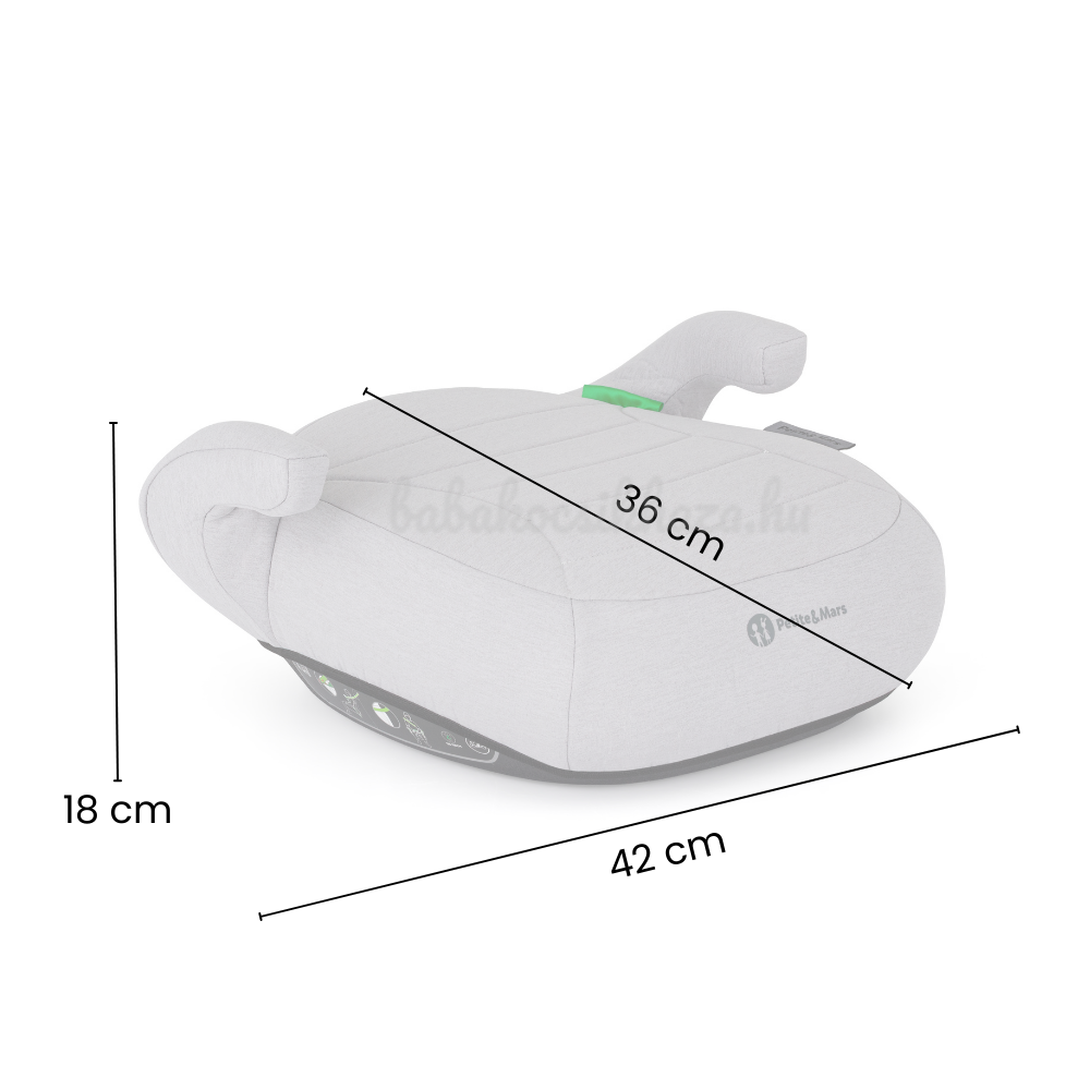 A megemelt kartámaszok segítik a jármű biztonsági övének megfelelő pozícióba vezetését, ezáltal támogatják annak helyes használatát és növelik a gyermek biztonságát. Az ülésmagasító menetirányban használható, a gyermeket a jármű 3 pontos biztonsági övével kell rögzíteni.