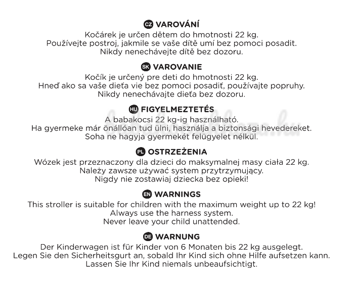 babakocsiban lévő gyermek maximális súlya: 22 kg