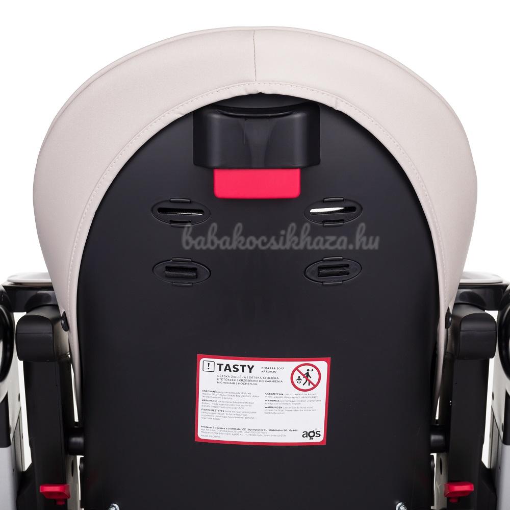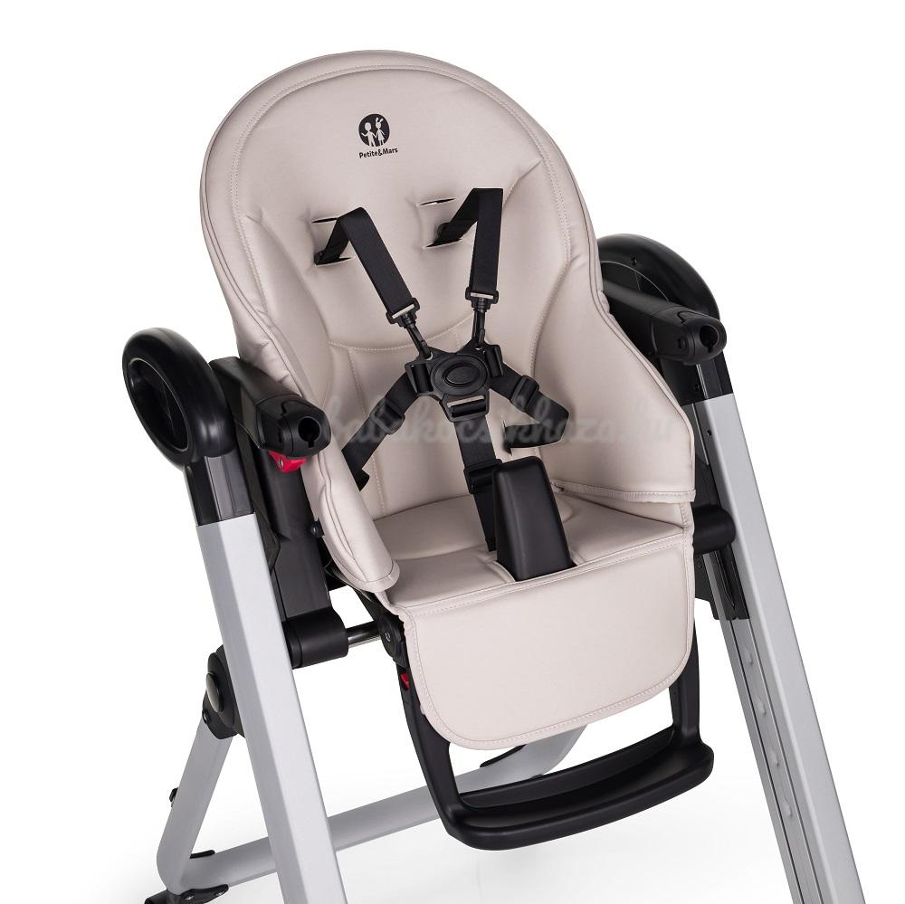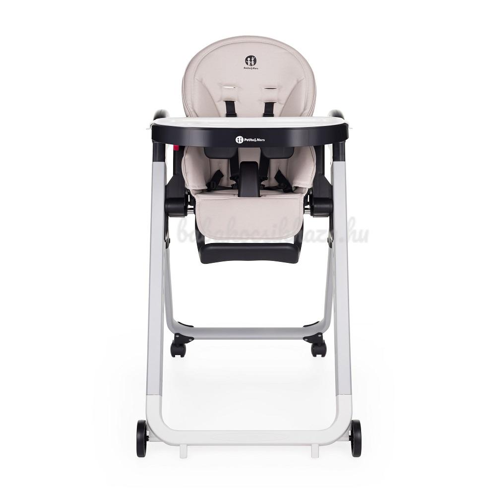 A Petite&Mars Tasty gyermekszék a kényelemre és funkcionalitásra tervezve. Egyszerűen beállítható a gyermek igényeihez, köszönhetően a 7 magassági állításnak, a 175 fokig dönthető háttámlának, amely ülésből fekvő pozícióba állítható, valamint az állítható lábtartónak. A szék kárpitozása tartós, sima PU anyagból készült, amely nagyon könnyen tisztítható. Nagy, állítható tálca, amely lecsatolható a székről, tökéletes helyet biztosít az étkezéshez, játékhoz vagy tanuláshoz, miközben az 5 pontos biztonsági öv megakadályozza a leesést. A gyermekszék nagyon mobilis a beépített kerekeknek köszönhetően és rendkívül kompakt, összecsukható 20 cm szélességre. Ez az étkezőszék funkcionális, biztonságos és kényelmes, így ideális választás minden gyermek számára.
