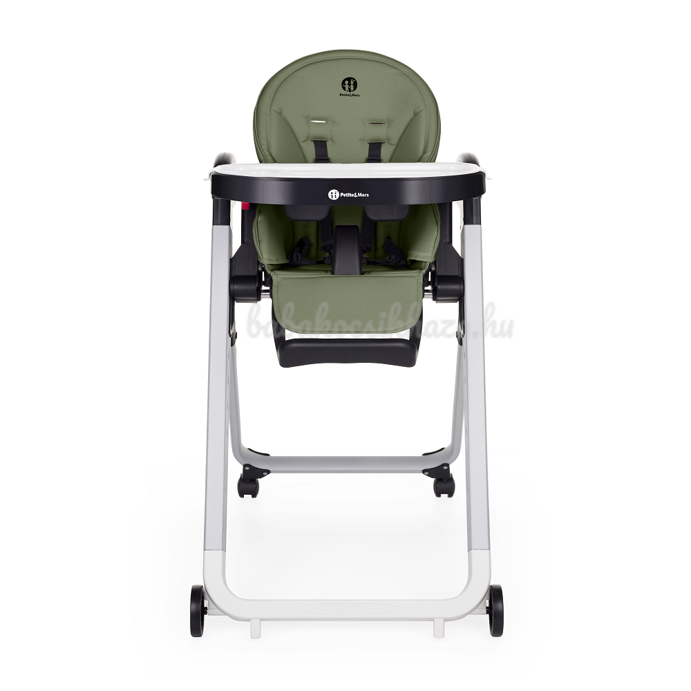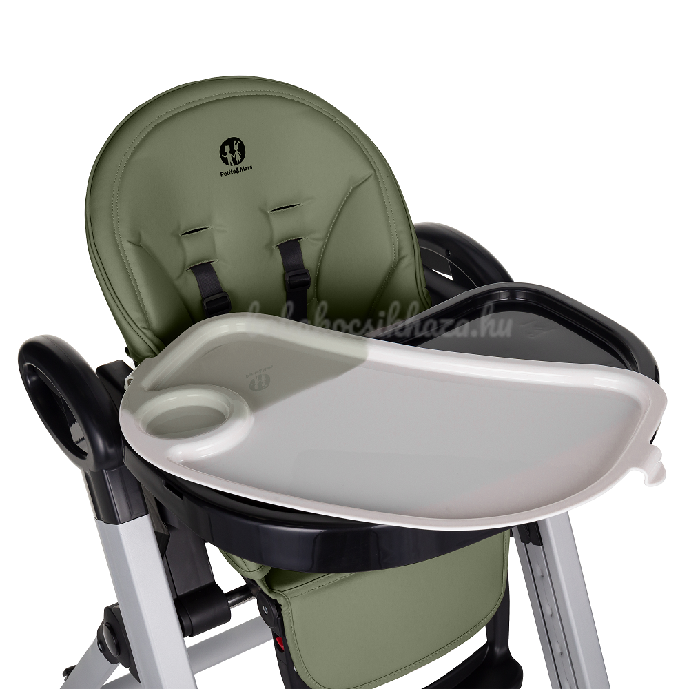A Petite&Mars Tasty gyermekszék a kényelemre és funkcionalitásra tervezve. Egyszerűen beállítható a gyermek igényeihez, köszönhetően a 7 magassági állításnak, a 175 fokig dönthető háttámlának, amely ülésből fekvő pozícióba állítható, valamint az állítható lábtartónak. A szék kárpitozása tartós, sima PU anyagból készült, amely nagyon könnyen tisztítható. Nagy, állítható tálca, amely lecsatolható a székről, tökéletes helyet biztosít az étkezéshez, játékhoz vagy tanuláshoz, miközben az 5 pontos biztonsági öv megakadályozza a leesést. A gyermekszék nagyon mobilis a beépített kerekeknek köszönhetően és rendkívül kompakt, összecsukható 20 cm szélességre. Ez az étkezőszék funkcionális, biztonságos és kényelmes, így ideális választás minden gyermek számára.