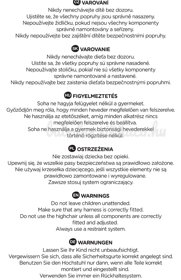 - 5 pontos biztonsági öv: maximális biztonságot biztosít és megakadályozza a gyermek leesését