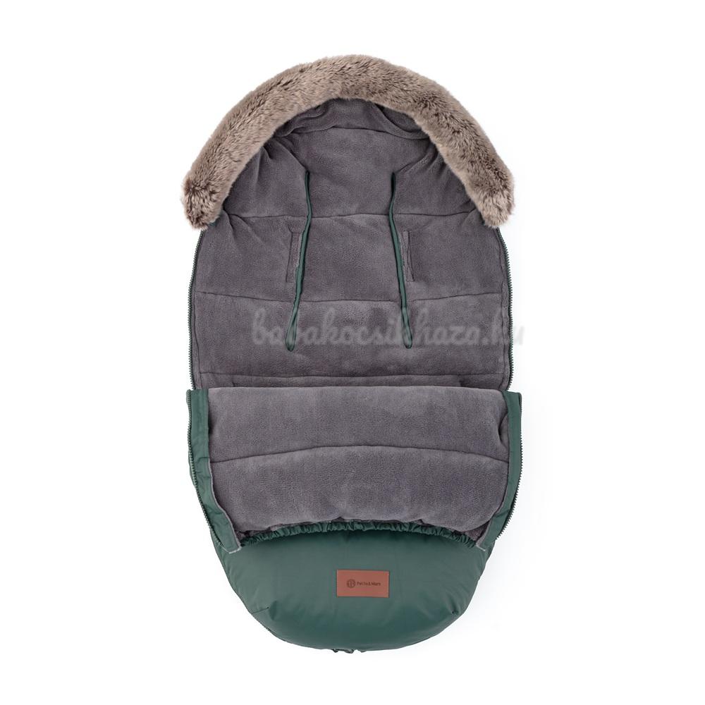 - Az alsó részen a cipzárak találkoznak, kinyitásukkal praktikus nyílás keletkezik a baba lábainak. A hátsó részen egy intelligens ívelt zseb található, amely megakadályozza a bundazsák elcsúszását.