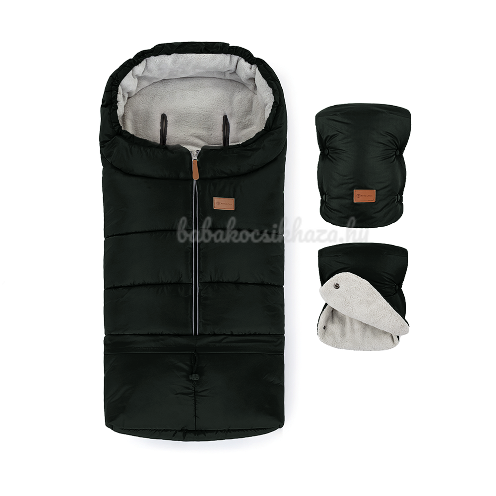 Teljes téli babakocsi felszerelés. Meleg meghosszabbítható bundazsák Jibot 3 in1 a babának és meleg Jasie kézmelegítő kesztyű a babakocsihoz az anyának. Mindegyik gyönyörűen összehangolt, egységes árnyalatban.
