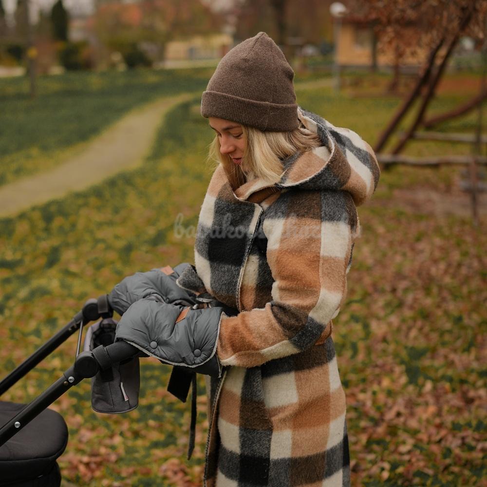 A hosszú séták többé nem jelentenek problémát sem a baba, sem az anya vagy az apa számára. Csak tegye a bundazsákot a babakocsiba és rögzítse a kesztyűt a babakocsi tolókarjához, és élvezze a meleget.