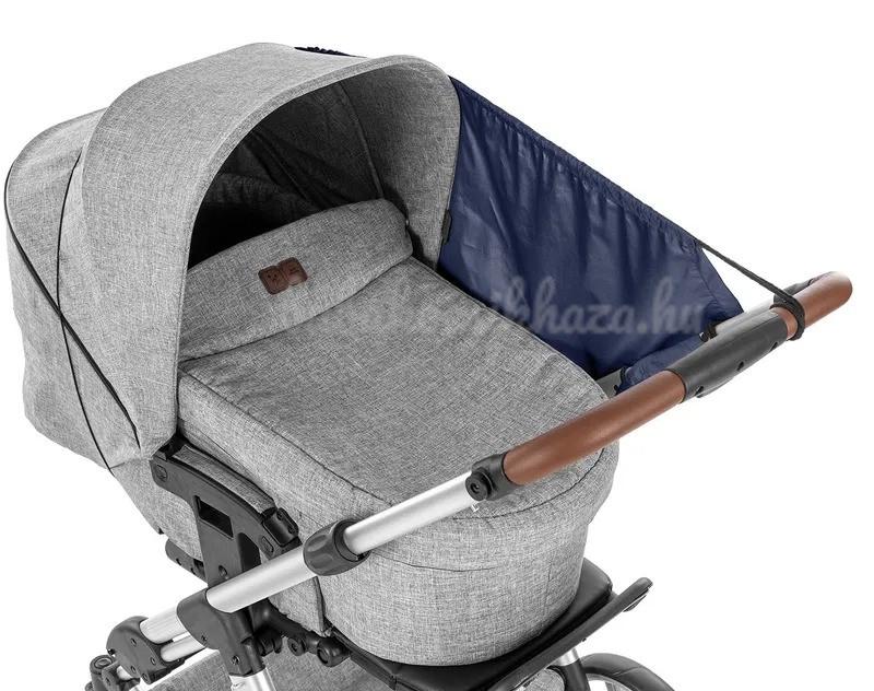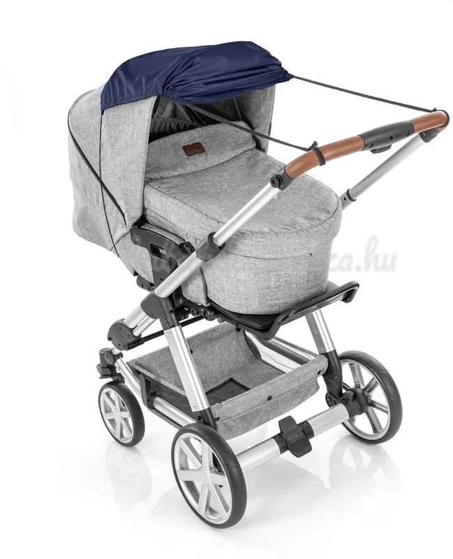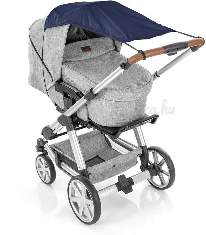 Állítható a nap állásának megfelelően Többféle szerelési módnak köszönhetően a napellenzőt az égen lévő nap aktuális helyzetéhez igazíthatja. A nagy árnyék létrehozásához csak át kell húzni a napellenzőt a tetőn és rögzíteni kell a babakocsi fogantyújához. Reggel és este, amikor a nap alacsonyan van a horizonton, a napellenzőt könnyen rögzítheti a babakocsi oldalához. Ha éppen nem szükséges a napellenző, visszahúzható, mint egy napellenző és így soha nem kell teljesen levenni a babakocsiról.