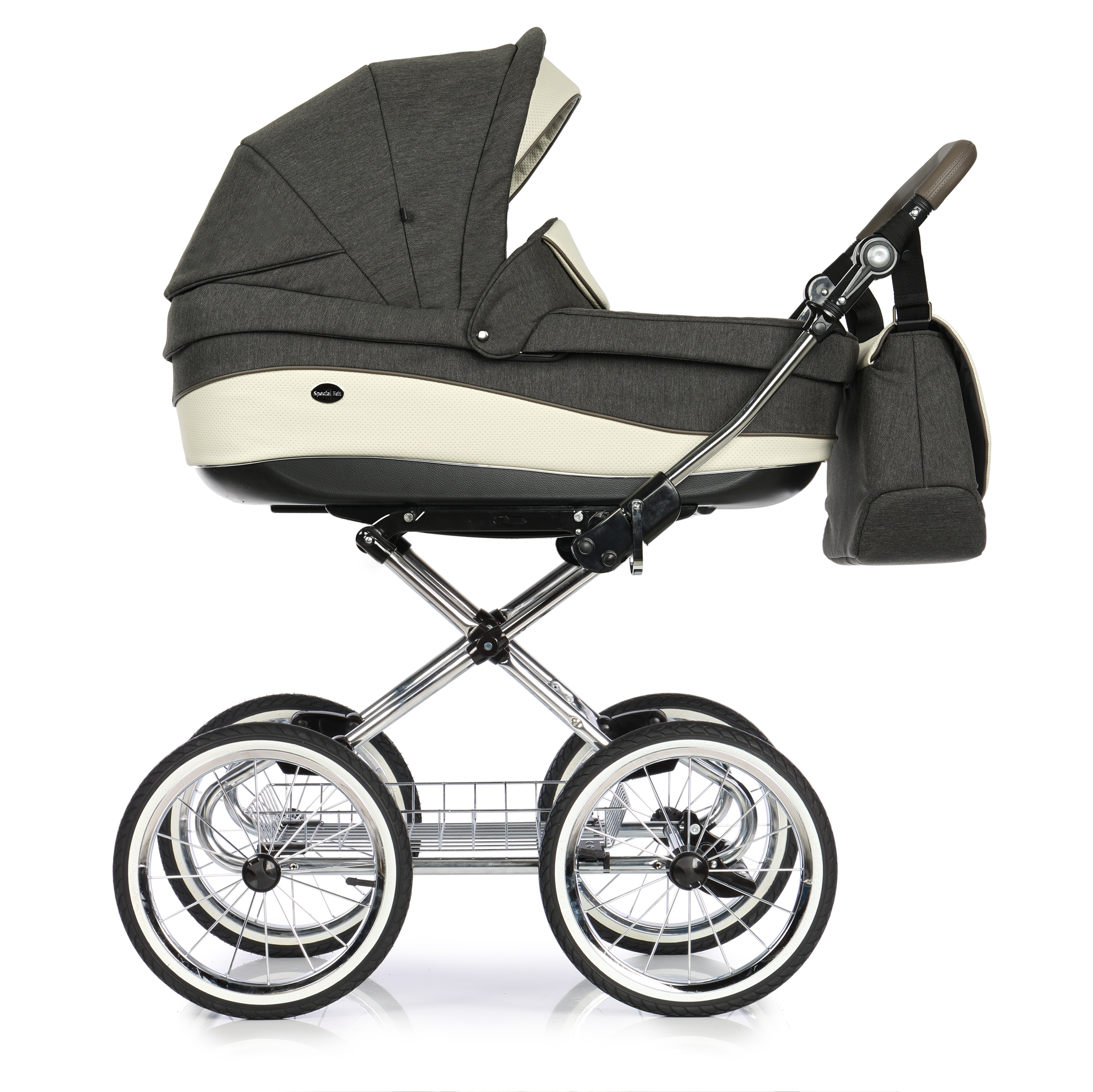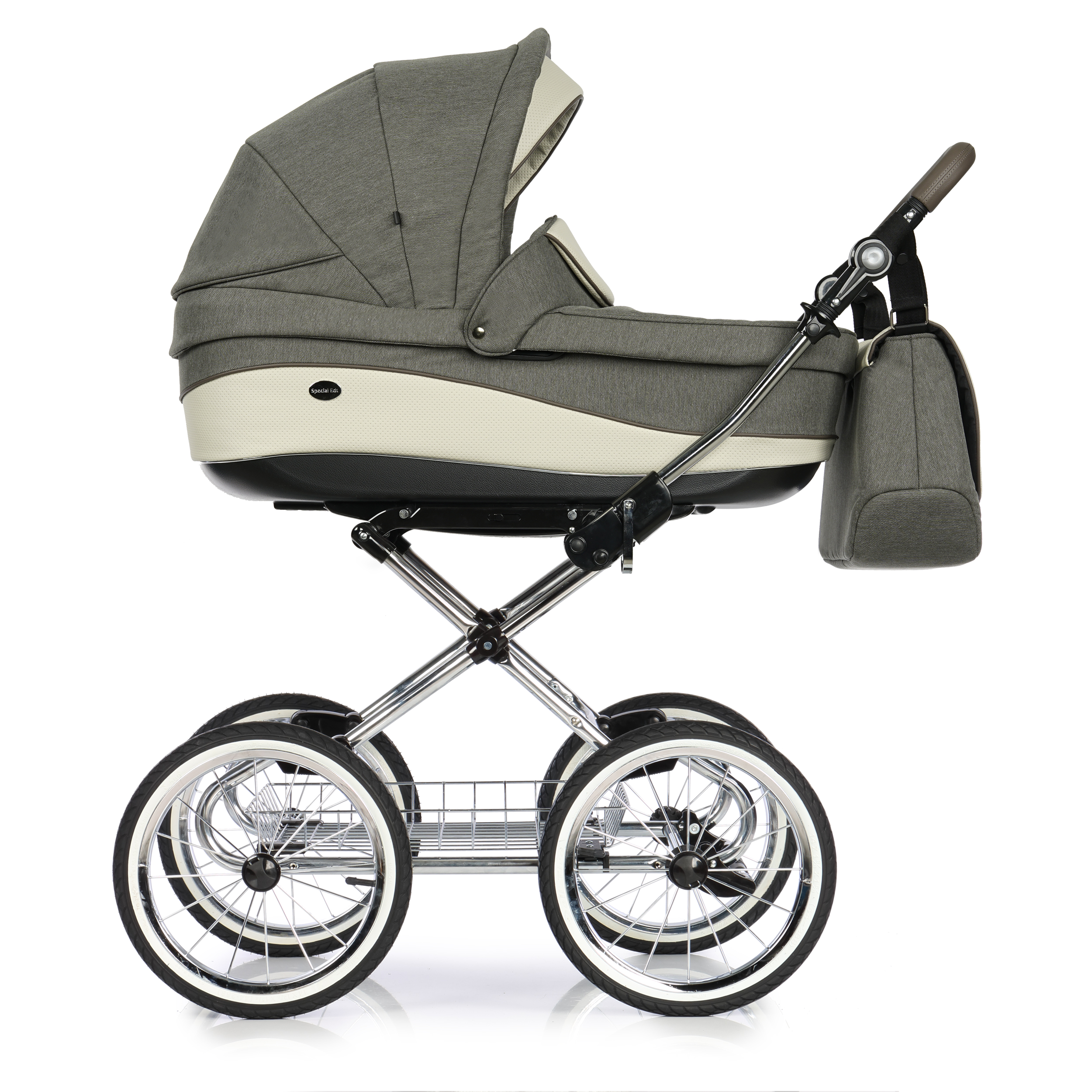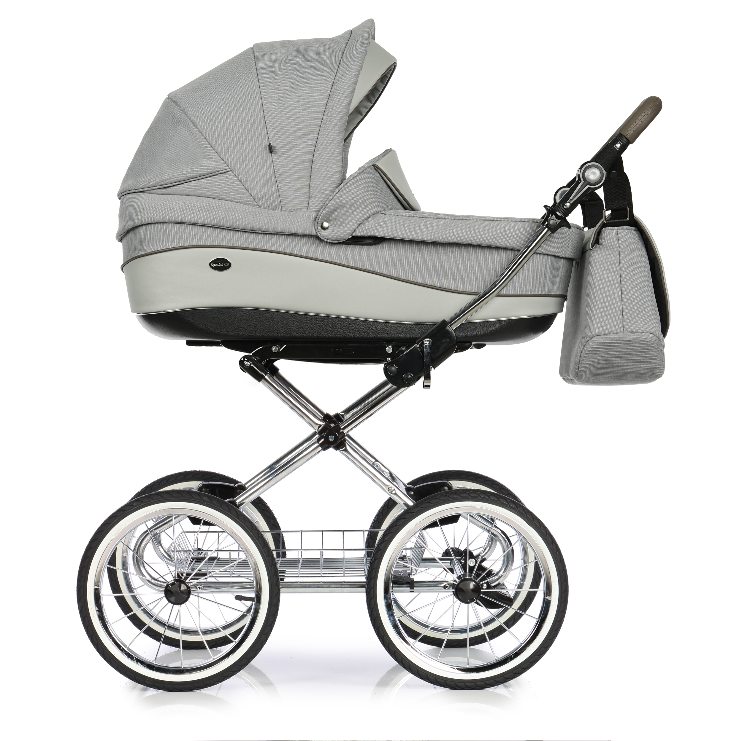 Mózes rész: merevített oldalfal, szivacsos bélésű pamut huzatú kényelmes kivehető és mosható fekvőbetét, alul egy retesz segítségével állítható a szellőzés, szellőztethető - nagy méretű lezippzározhatós szúnyogháló rész, lehajtható kupola, a mózes alján egy tekerő segítségével több pozícióban állítható a fej dőlésszöge, kényelmes (bőr) hordozó fogantyú, cipzárral bővíthető napellenző, cipzárral rögzíthető belső szúnyogháló, vastag lábzsák (súlya: kb. 4kg)