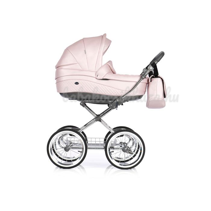 Babahordozó: 0-10kg-ig (kb.1éves korig) használható, adapter segítségével egy mozdulattal rögzíthető a babakocsi vázszerkezetére, jó oldal- és fejvédelem, kivehető frottír újszülött szűkítőbetét és deréktámasz, kupola, 3 pontos párnázott biztonsági övrendszer központi övfeszítővel, vastag lábzsák (súlya: 2,5kg)