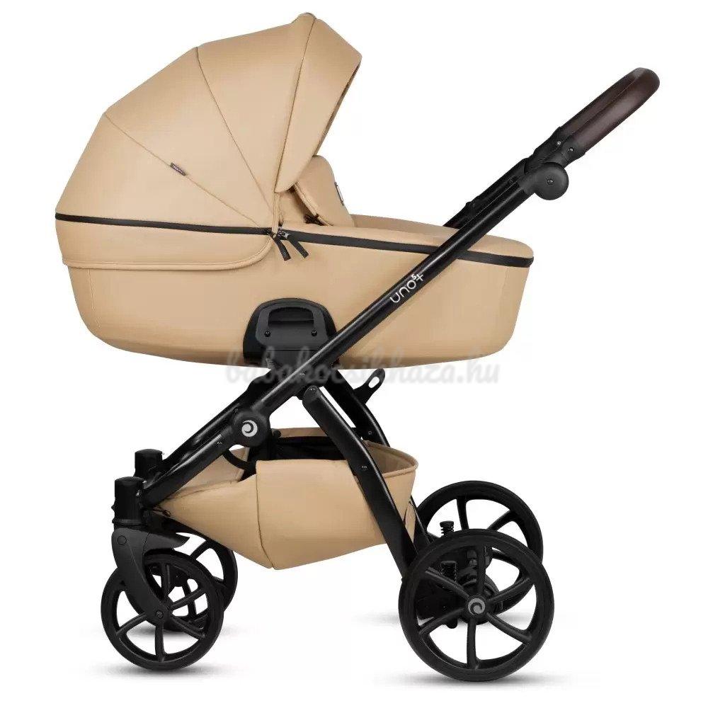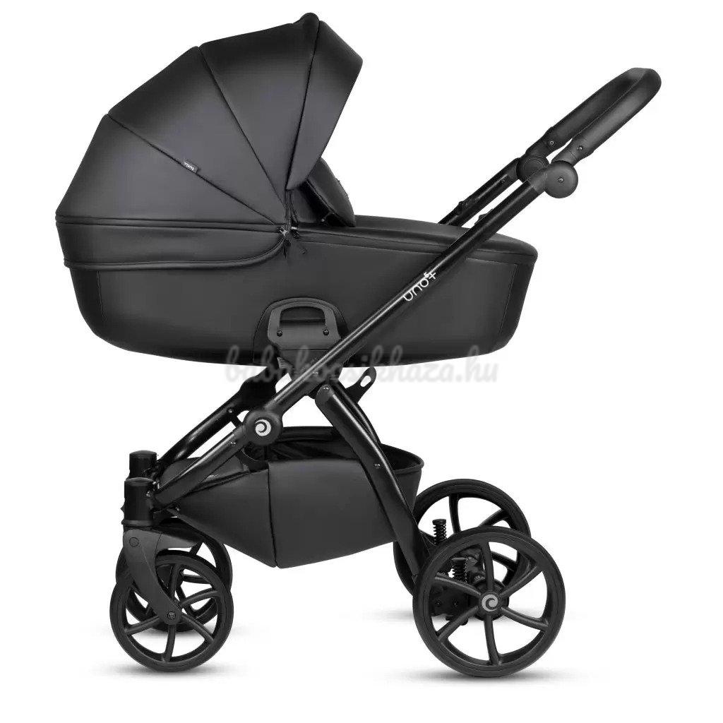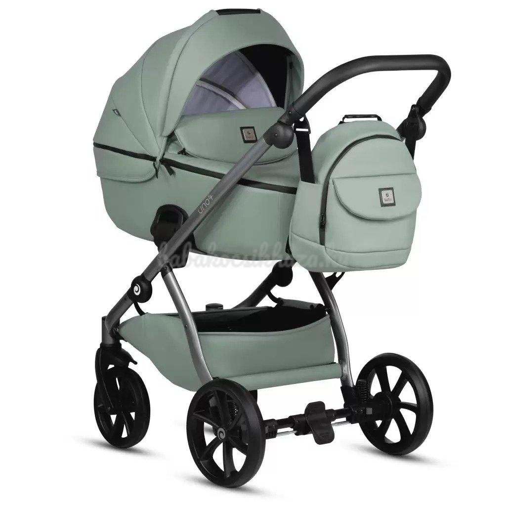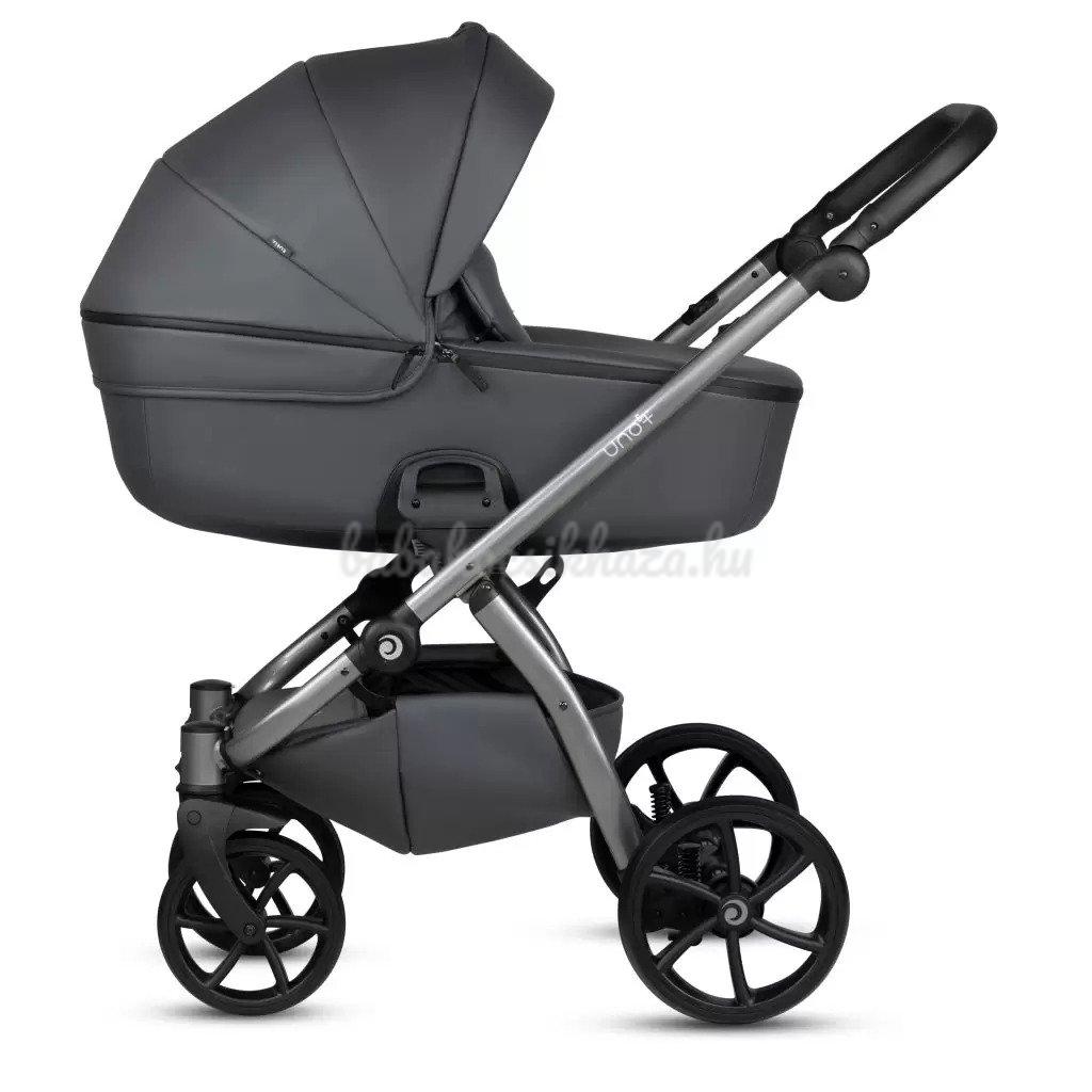 A babakocsi részletei nagyszerűen harmonizálnak egymással: ezüst felülettel ellátott váz, valamint pazar és tartós ökobőr részletek biztosítják a babakocsi lenyűgöző megjelenését. Az UNO kollekció a csillogó ökobőr részletek és a textilszövet figyelemre méltó harmonikus kombinációja teszi különlegessé